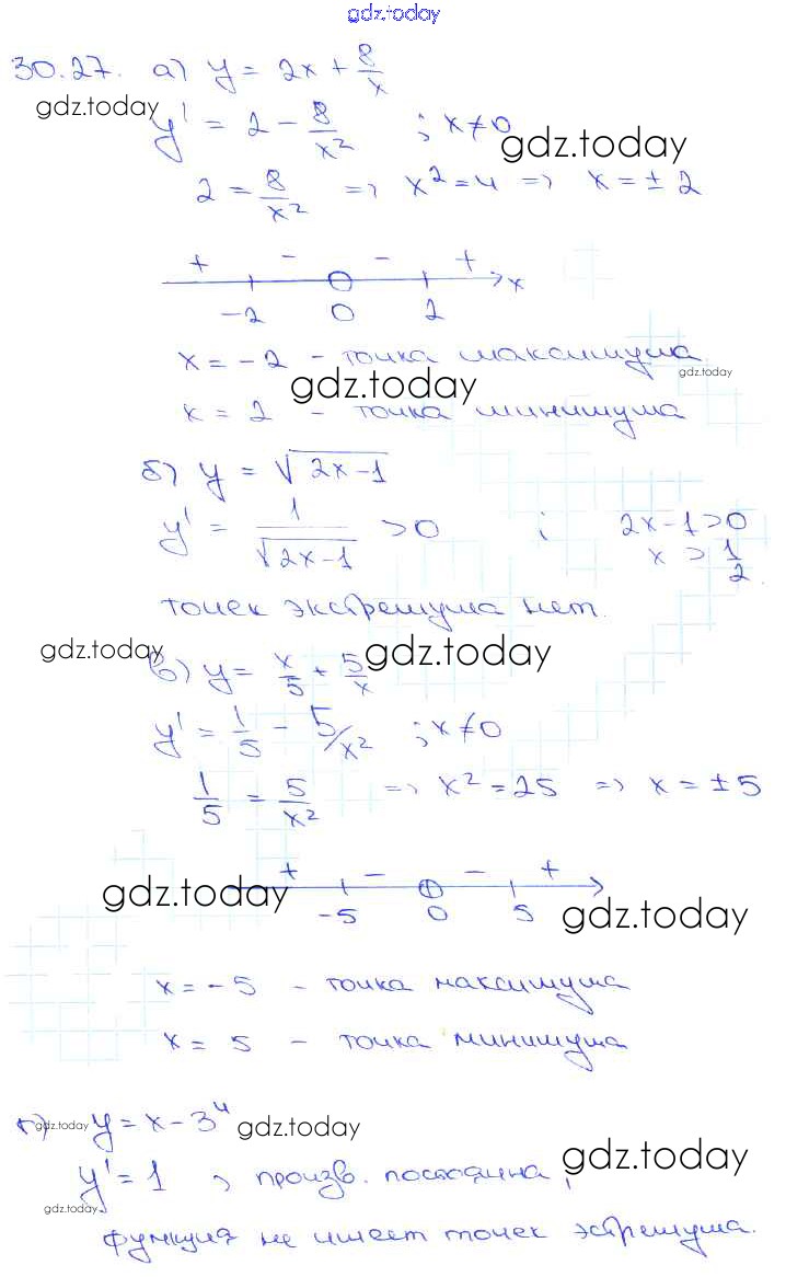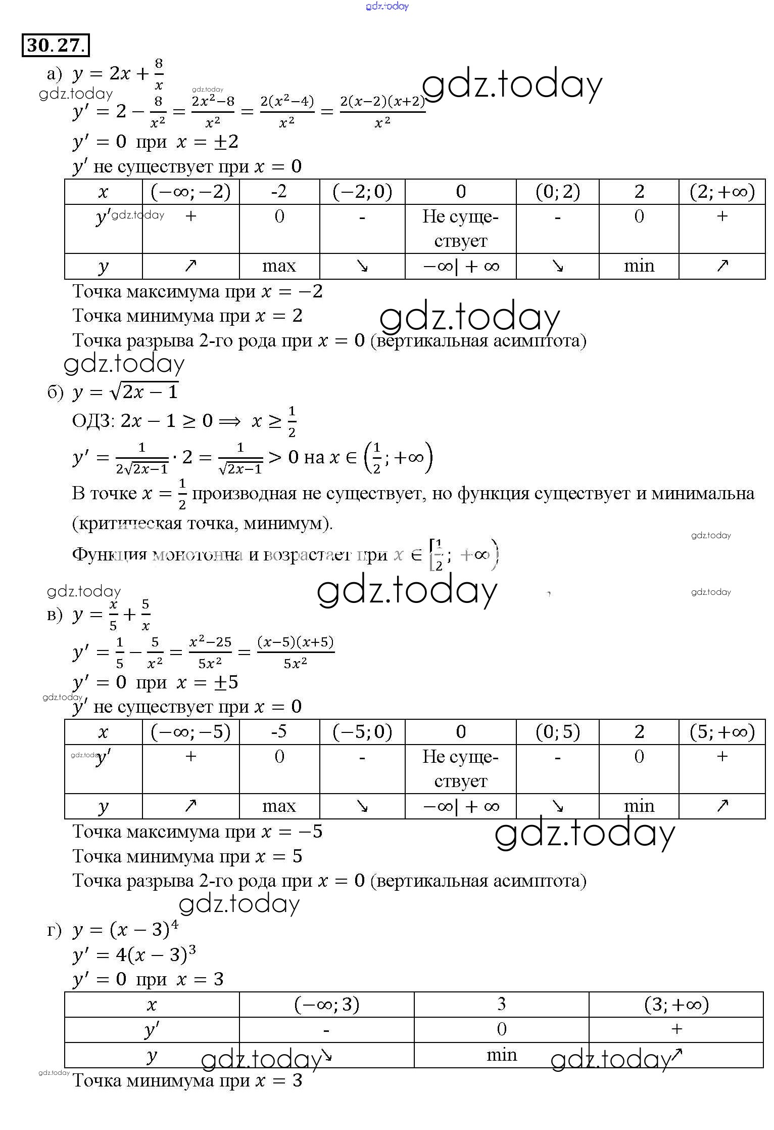 Ответы к §30. Применение производной для исследования функций на монотонность и экстремумы Глава 5 30. 27 Задачнику по Алгебре для 10-11 класса Мордкович, Денищева Базовый уровень Мнемозина 2015