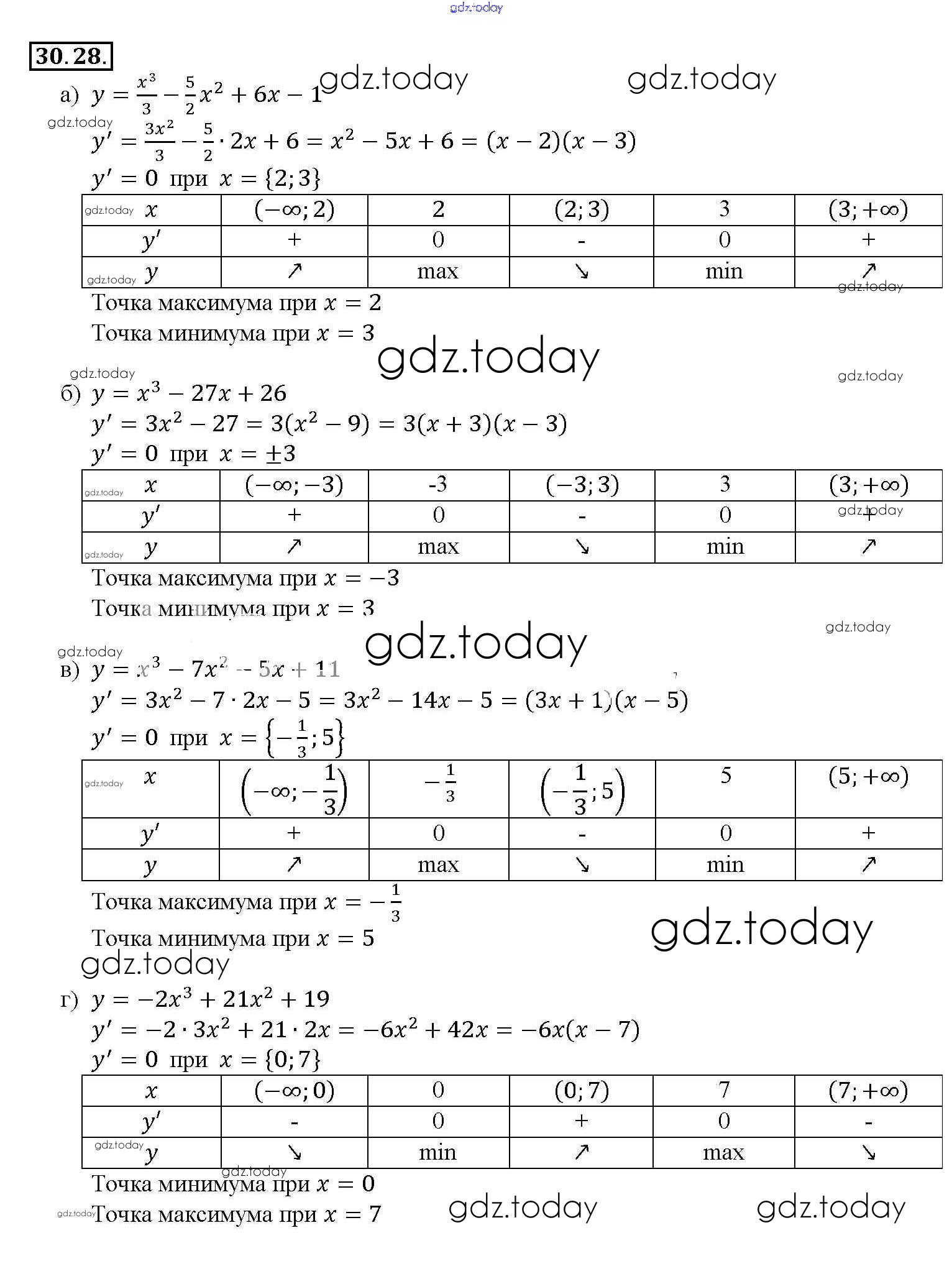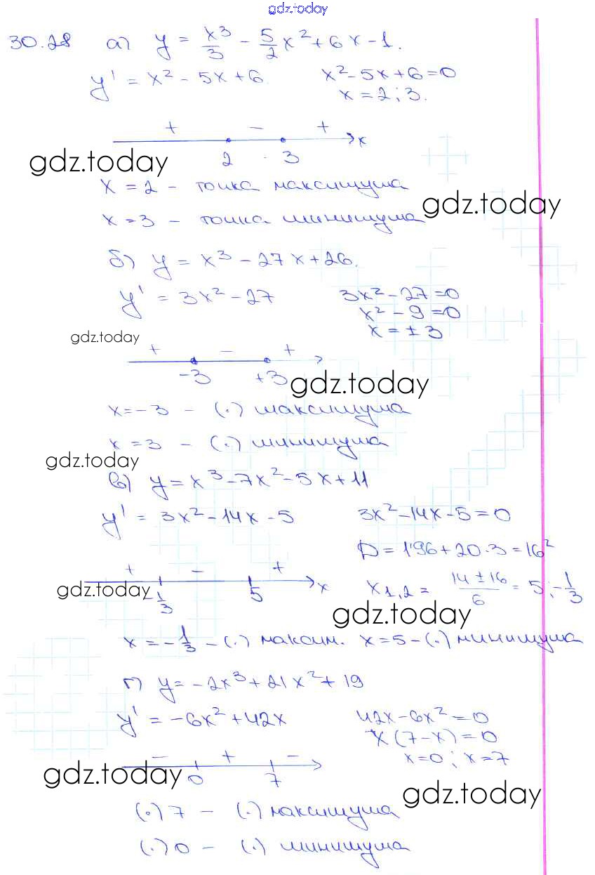 Ответы к §30. Применение производной для исследования функций на монотонность и экстремумы Глава 5 30. 28 Задачнику по Алгебре для 10-11 класса Мордкович, Денищева Базовый уровень Мнемозина 2015