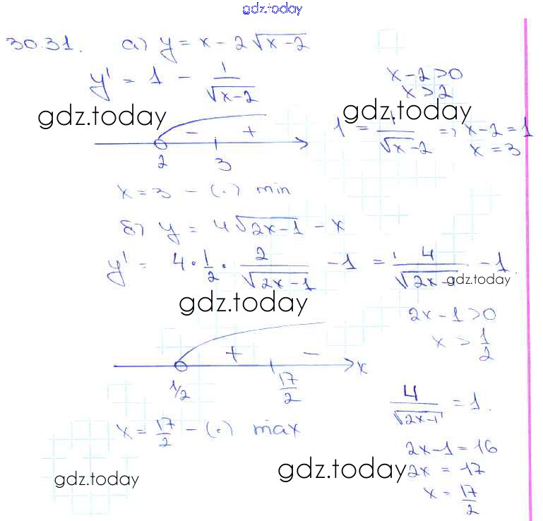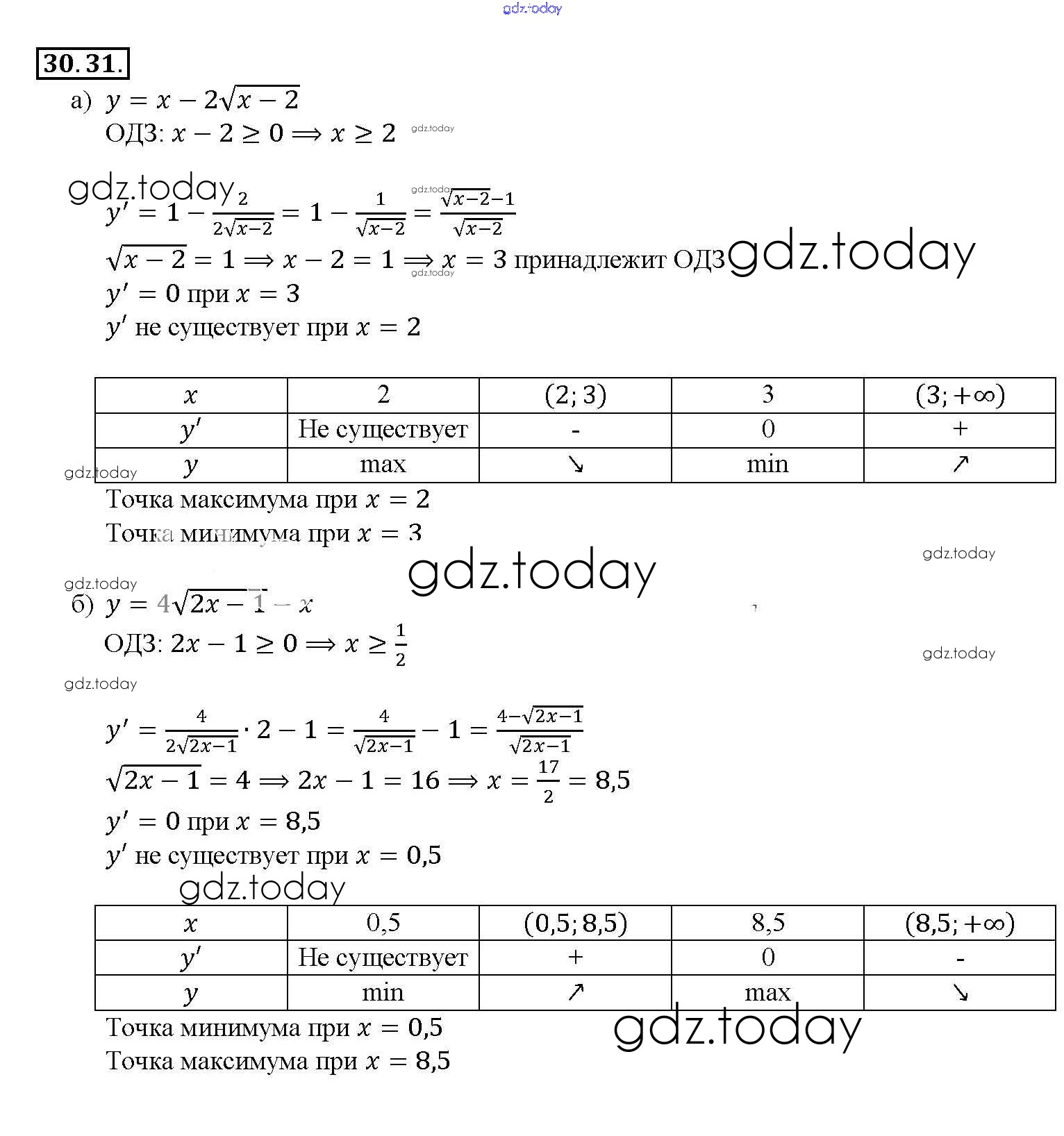 Ответы к §30. Применение производной для исследования функций на монотонность и экстремумы Глава 5 30. 31 Задачнику по Алгебре для 10-11 класса Мордкович, Денищева Базовый уровень Мнемозина 2015