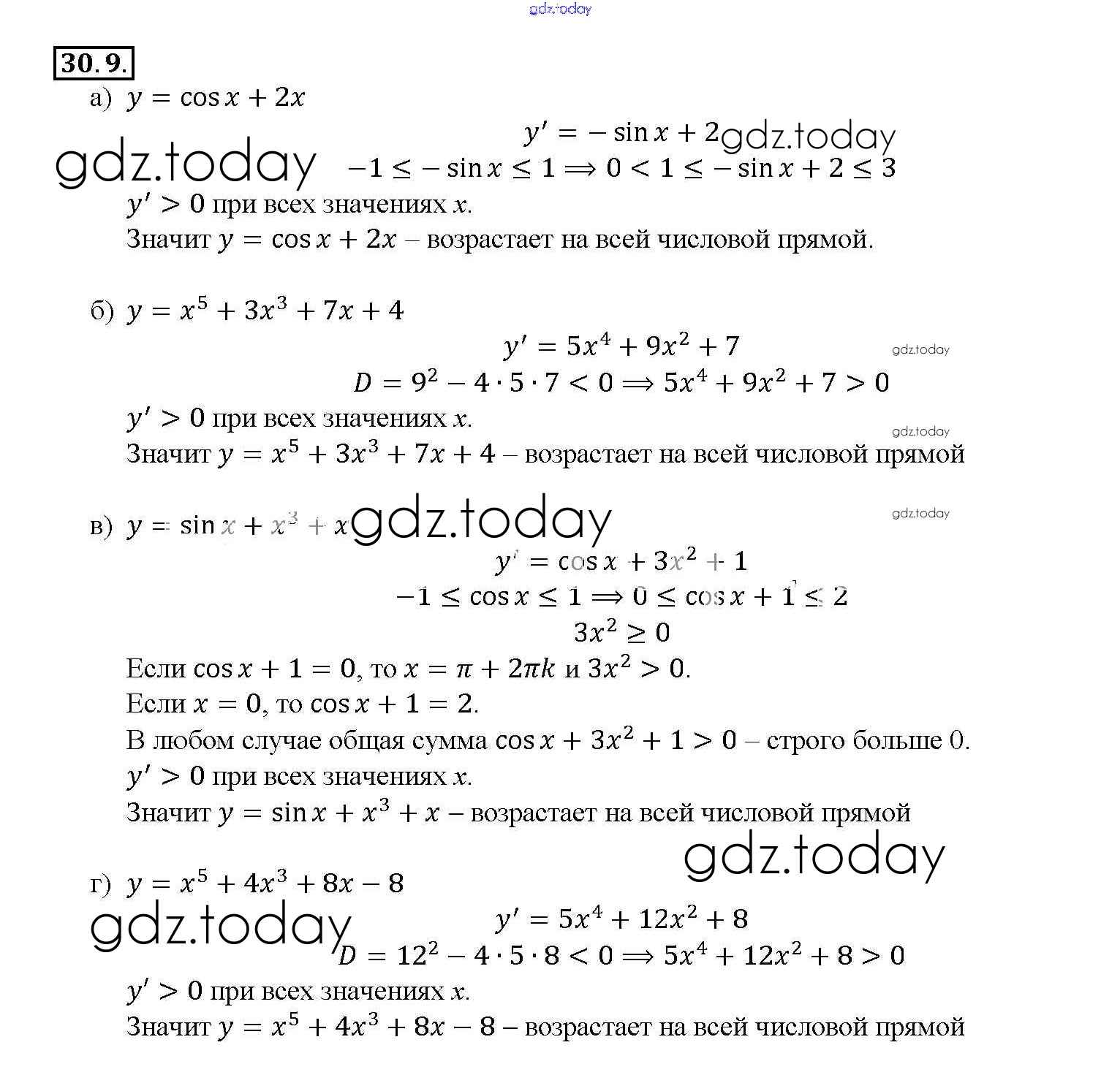 На страницах сайта gdz.today вы найдете учебный и вспомогательный материал, направленный на улучшения знаний школьной программы. ГДЗ - онлайн мир знаний §30. Применение производной для исследования функций на монотонность и экстремумы Глава 5 30. 9 Задачнику по Алгебре для 10-11 класса Мордкович, Денищева Базовый уровень Мнемозина 2015