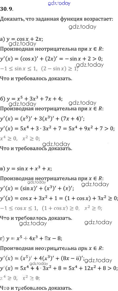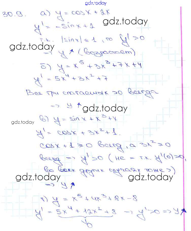 Ответы к §30. Применение производной для исследования функций на монотонность и экстремумы Глава 5 30. 9 Задачнику по Алгебре для 10-11 класса Мордкович, Денищева Базовый уровень Мнемозина 2015