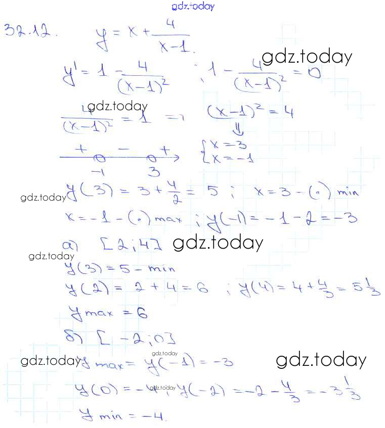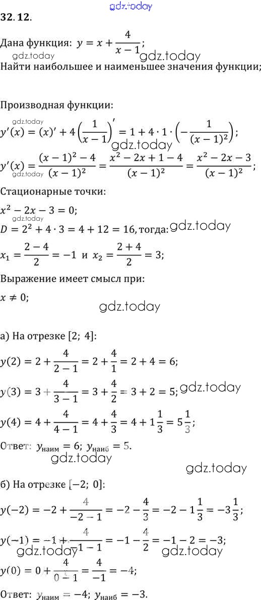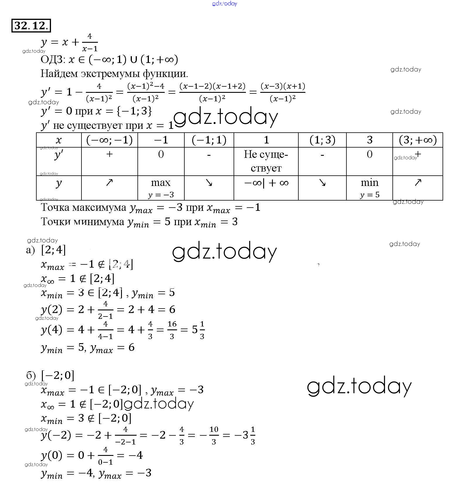 Ответы к §32. Применение производной для нахождения наибольших и наименьших значений величин Глава 5 32. 12 Задачнику по Алгебре для 10-11 класса Мордкович, Денищева Базовый уровень Мнемозина 2015