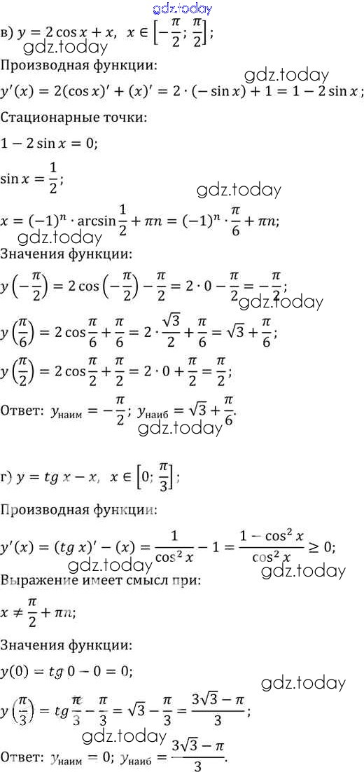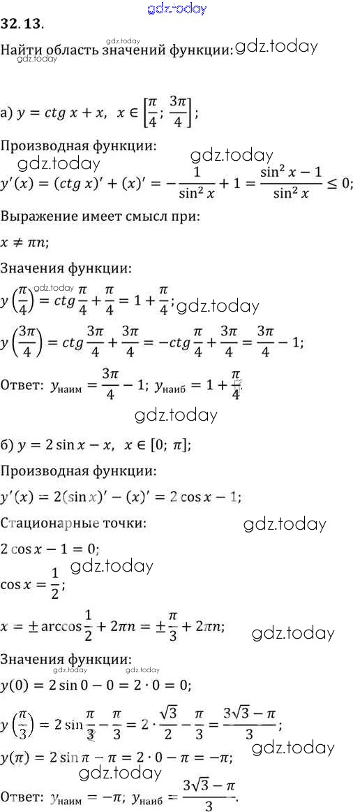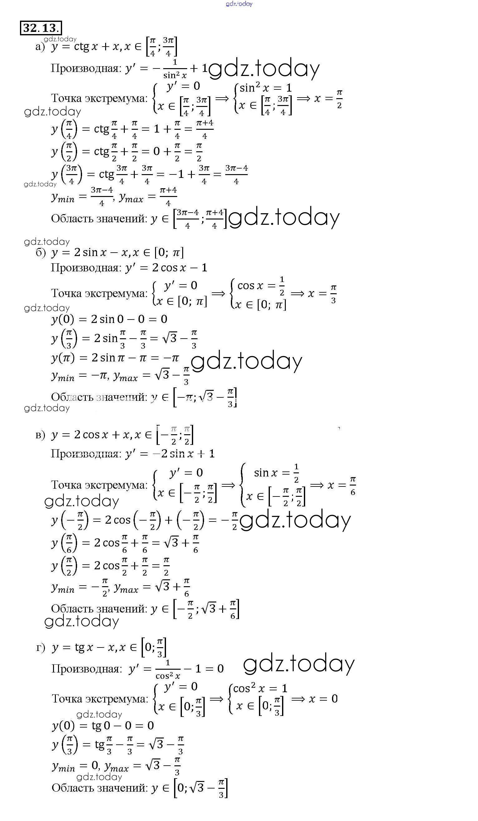 Ответы к §32. Применение производной для нахождения наибольших и наименьших значений величин Глава 5 32. 13 Задачнику по Алгебре для 10-11 класса Мордкович, Денищева Базовый уровень Мнемозина 2015