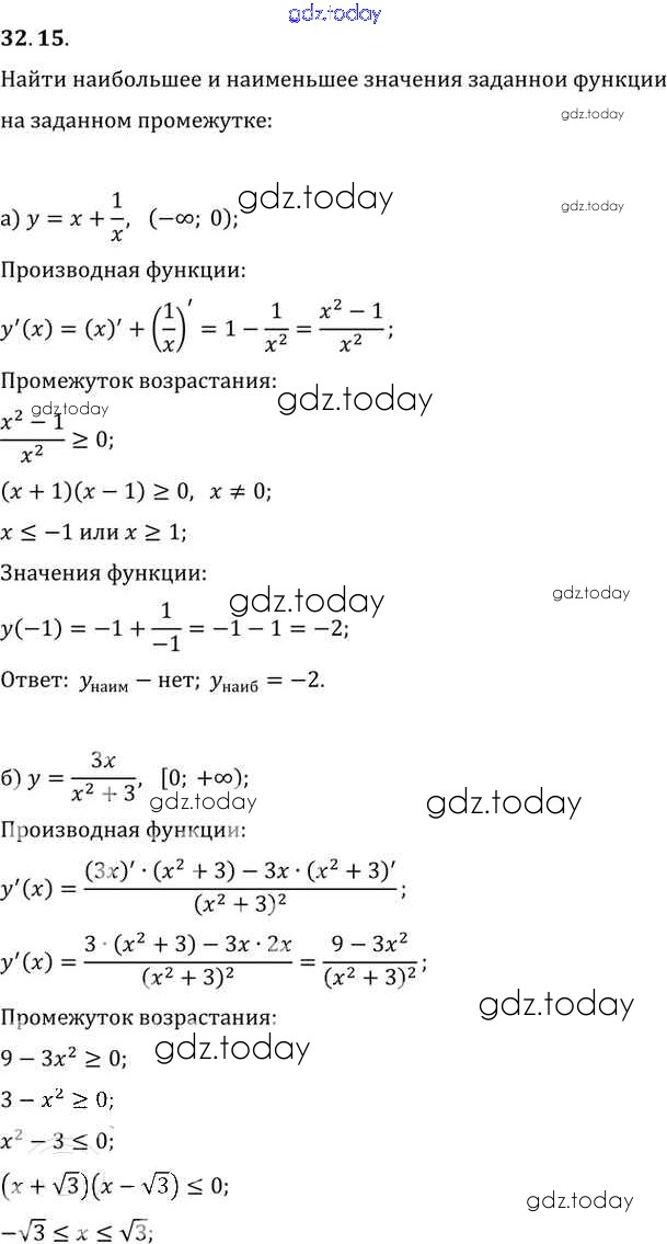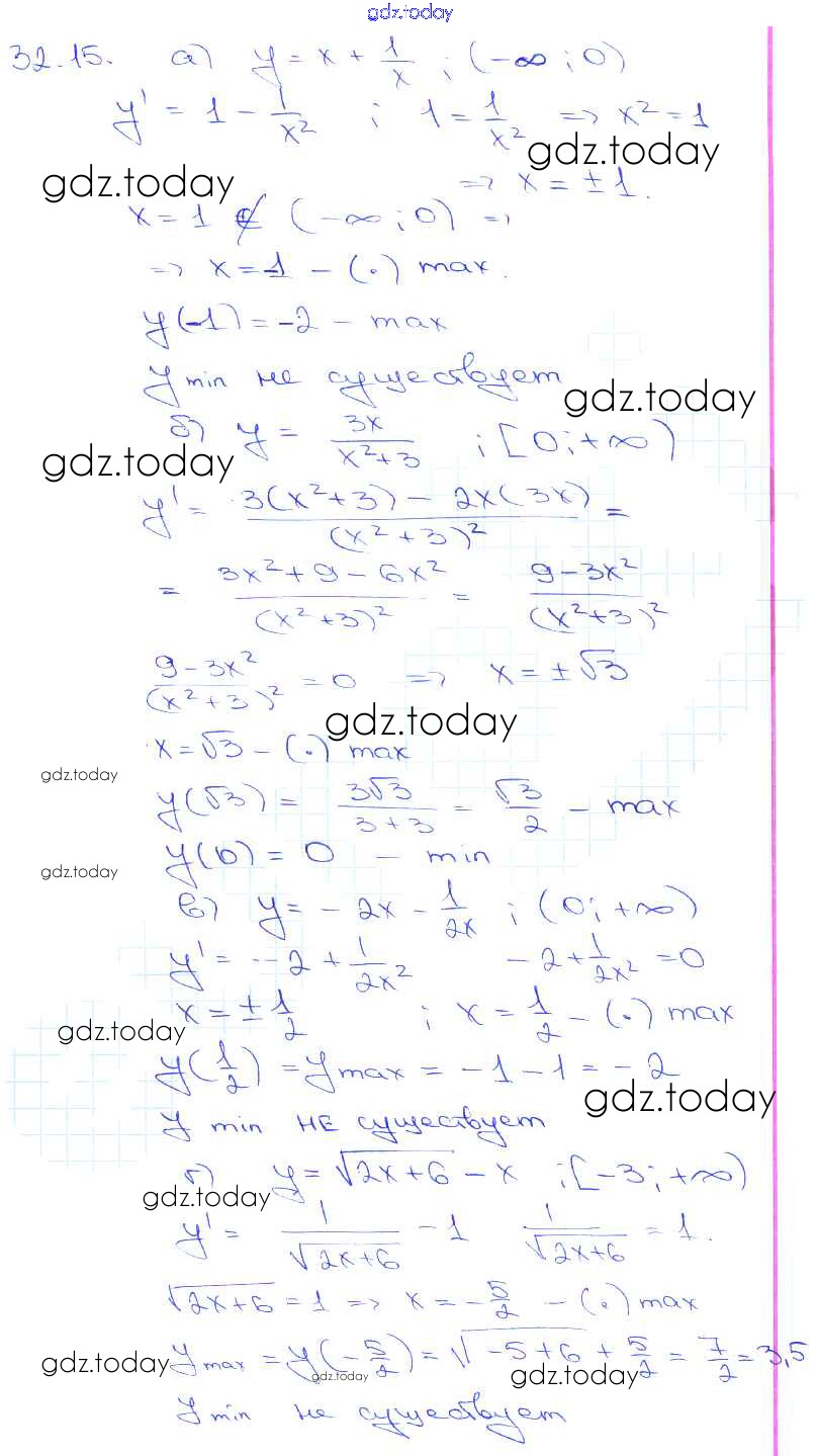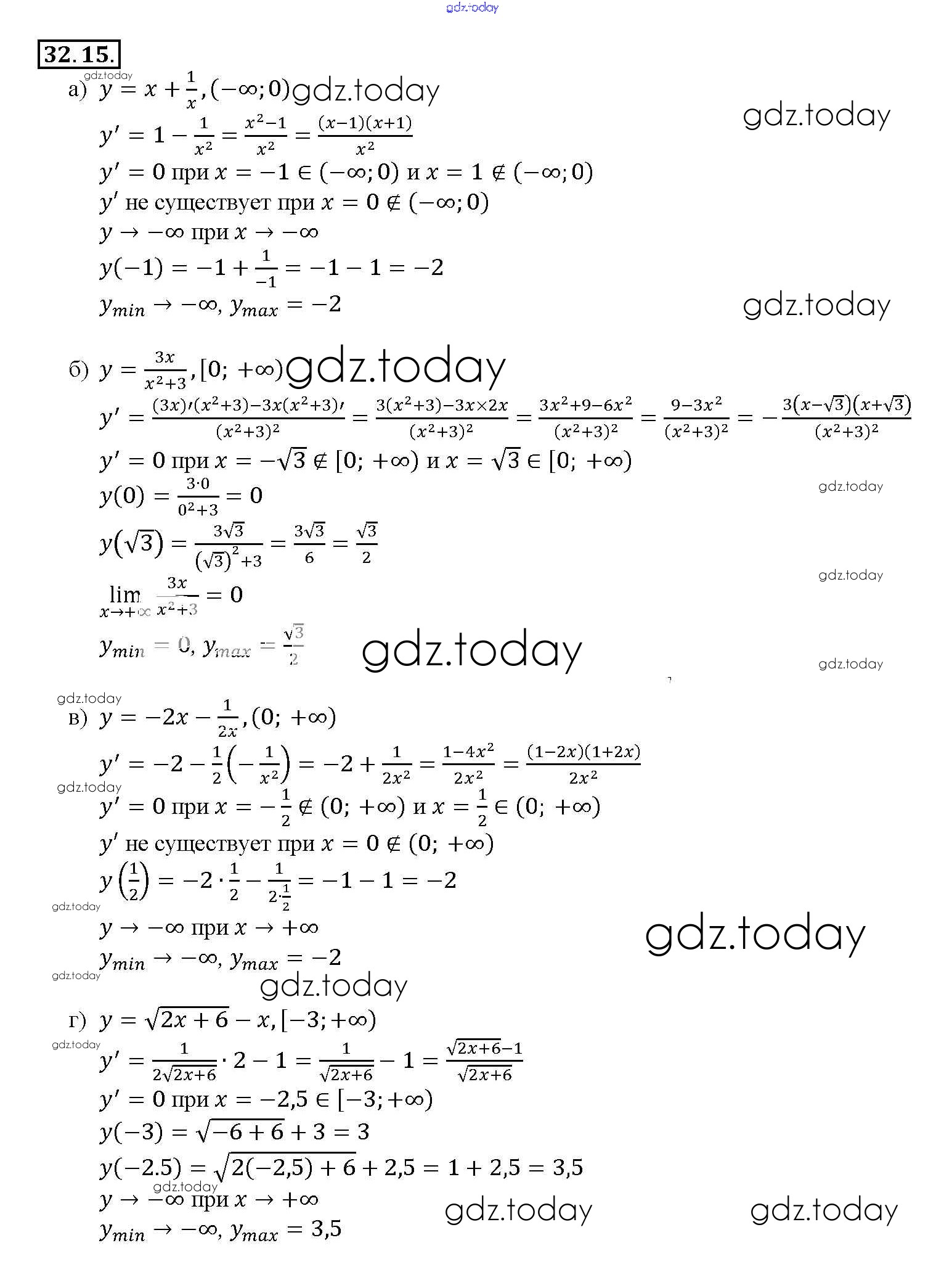 Ответы к §32. Применение производной для нахождения наибольших и наименьших значений величин Глава 5 32. 15 Задачнику по Алгебре для 10-11 класса Мордкович, Денищева Базовый уровень Мнемозина 2015