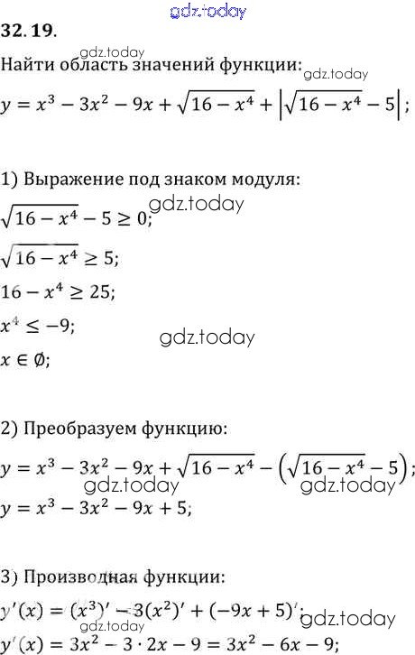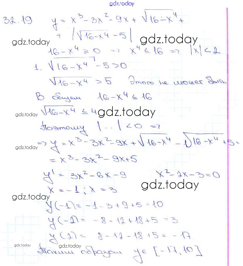 На страницах сайта gdz.today вы найдете учебный и вспомогательный материал, направленный на улучшения знаний школьной программы. ГДЗ - онлайн мир знаний §32. Применение производной для нахождения наибольших и наименьших значений величин Глава 5 32. 19 Задачнику по Алгебре для 10-11 класса Мордкович, Денищева Базовый уровень Мнемозина 2015
