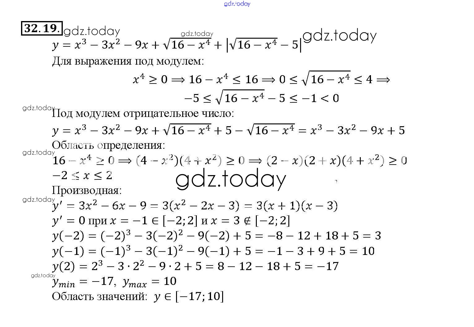 Ответы к §32. Применение производной для нахождения наибольших и наименьших значений величин Глава 5 32. 19 Задачнику по Алгебре для 10-11 класса Мордкович, Денищева Базовый уровень Мнемозина 2015