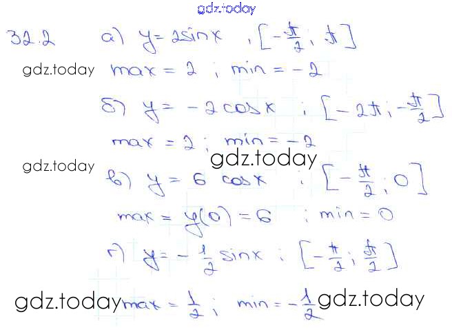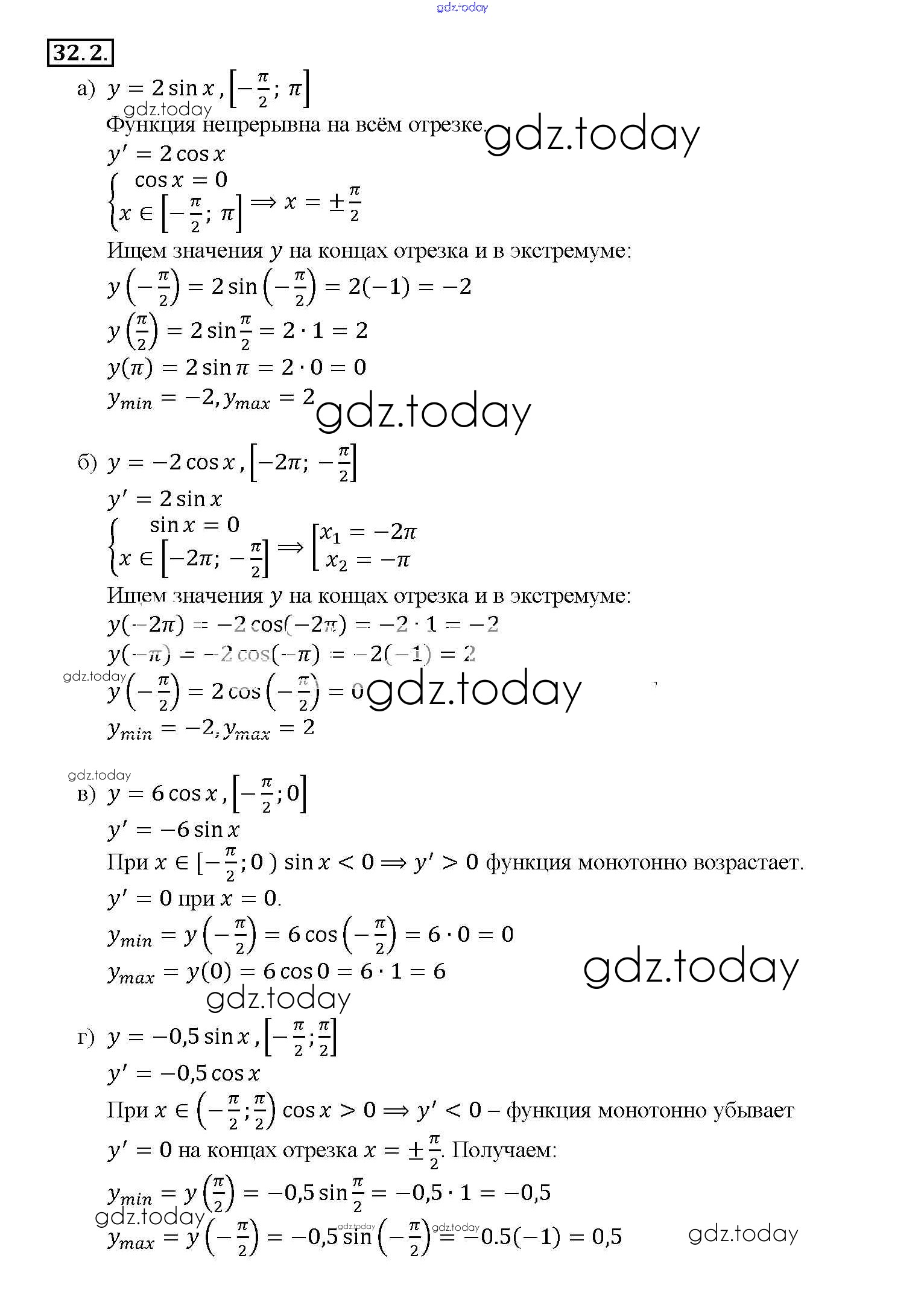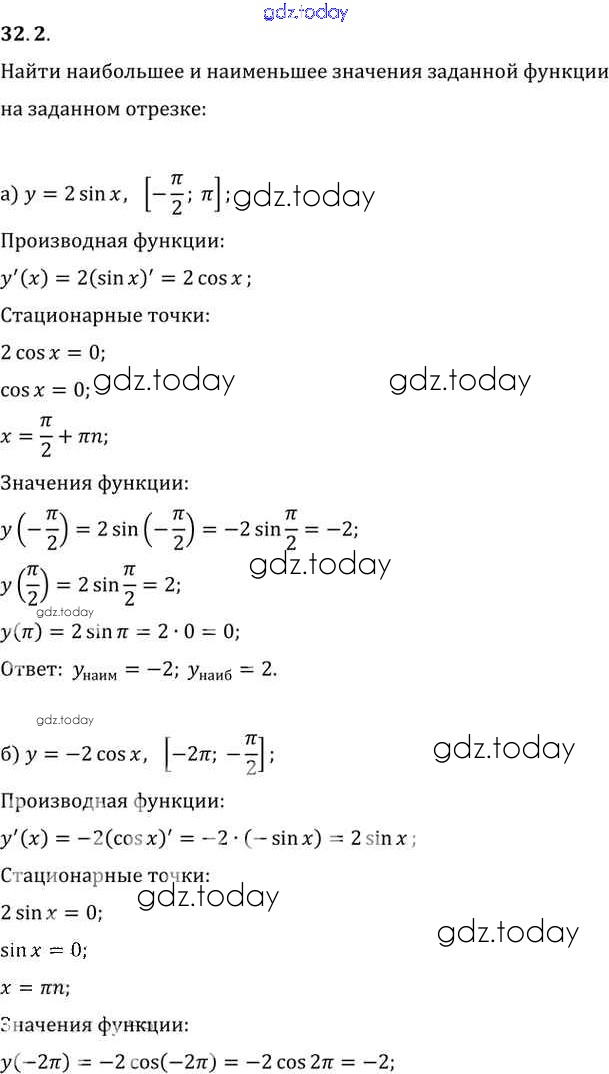 Ответы к §32. Применение производной для нахождения наибольших и наименьших значений величин Глава 5 32. 2 Задачнику по Алгебре для 10-11 класса Мордкович, Денищева Базовый уровень Мнемозина 2015