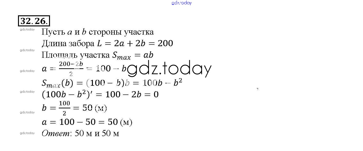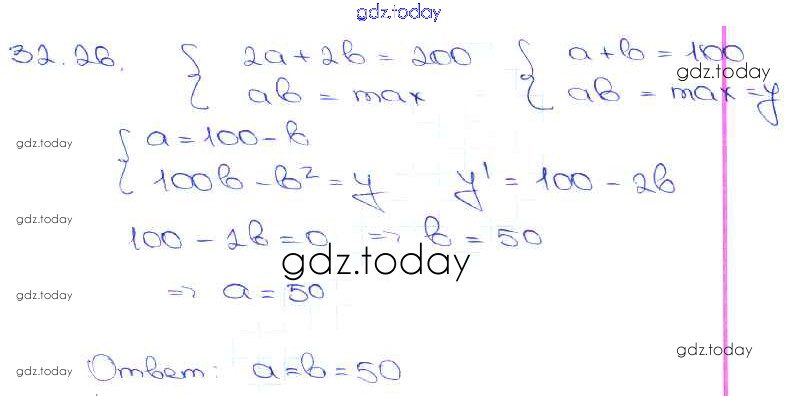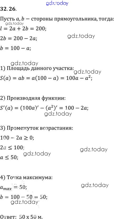 Ответы к §32. Применение производной для нахождения наибольших и наименьших значений величин Глава 5 32. 26 Задачнику по Алгебре для 10-11 класса Мордкович, Денищева Базовый уровень Мнемозина 2015