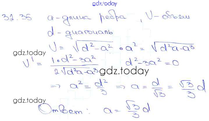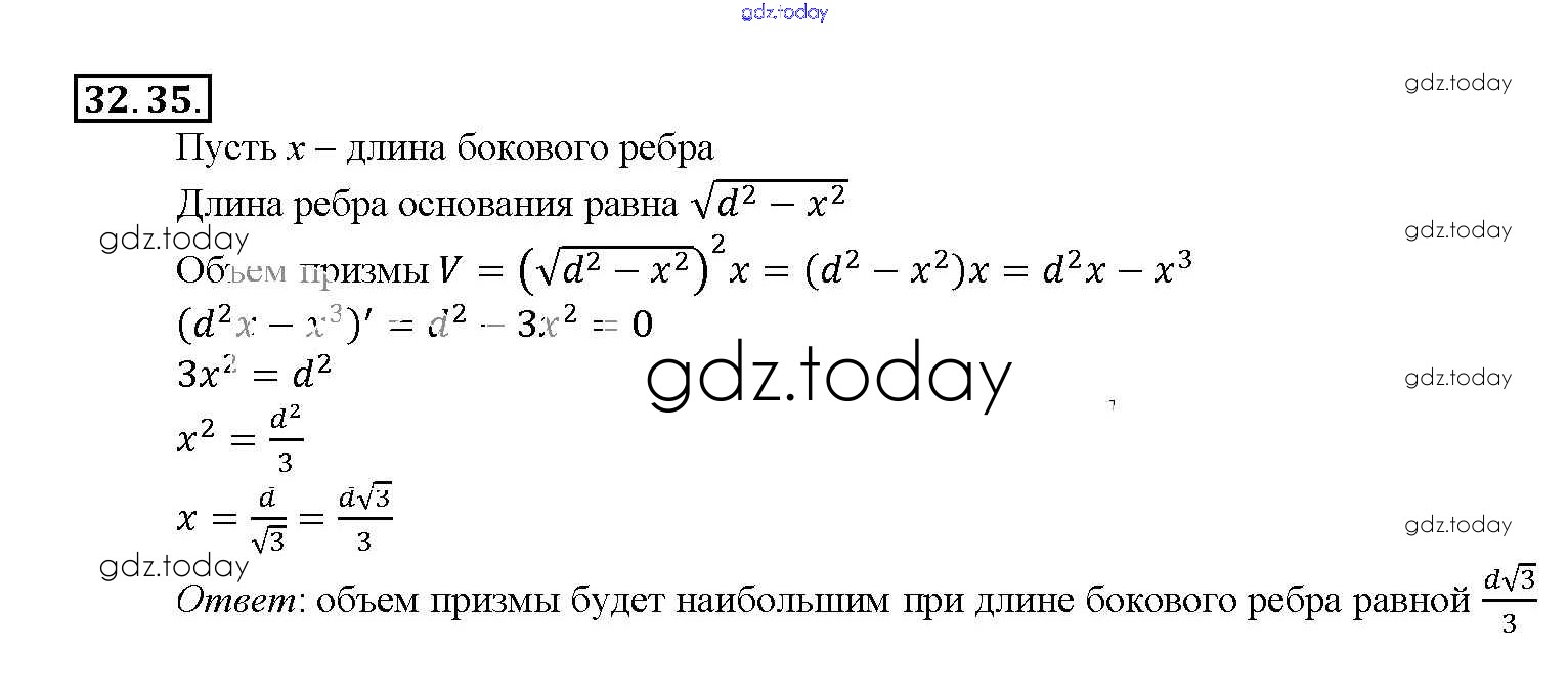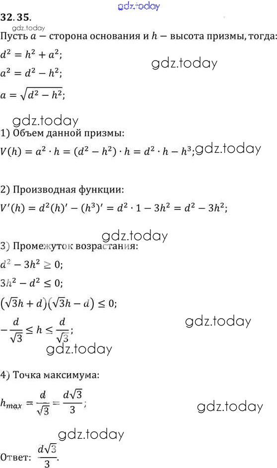 Ответы к §32. Применение производной для нахождения наибольших и наименьших значений величин Глава 5 32. 35 Задачнику по Алгебре для 10-11 класса Мордкович, Денищева Базовый уровень Мнемозина 2015