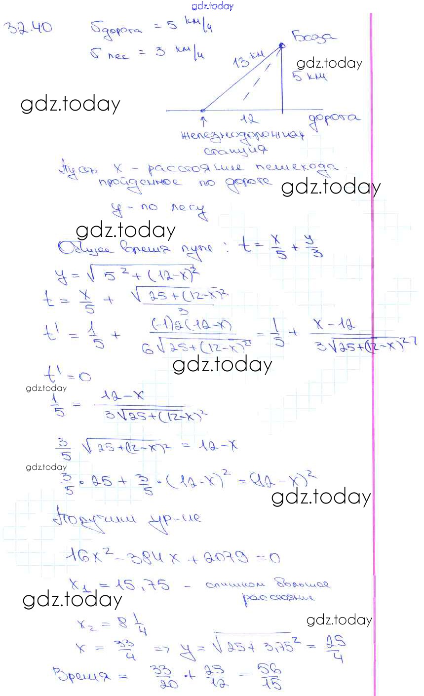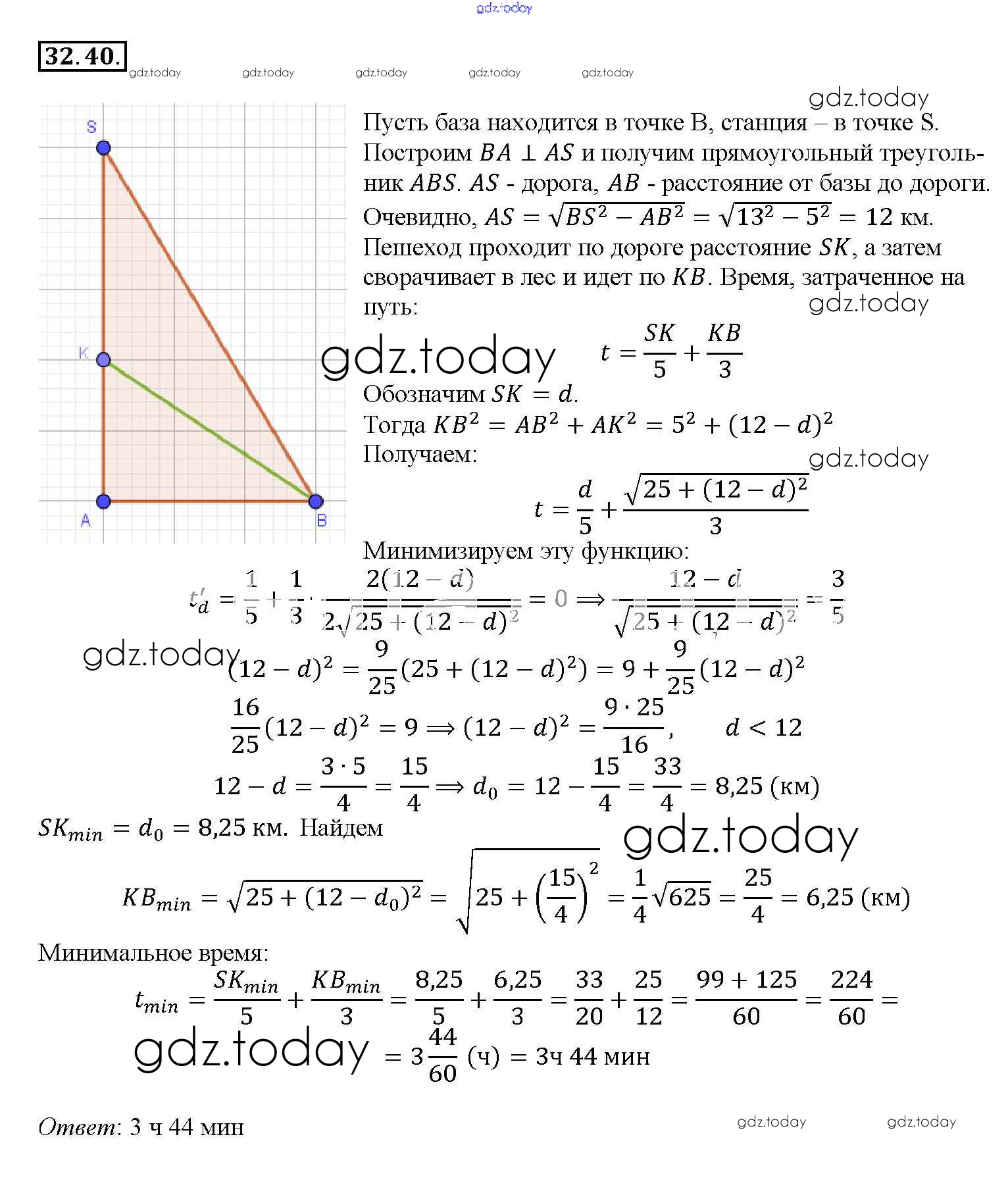 На страницах сайта gdz.today вы найдете учебный и вспомогательный материал, направленный на улучшения знаний школьной программы. ГДЗ - онлайн мир знаний §32. Применение производной для нахождения наибольших и наименьших значений величин Глава 5 32. 40 Задачнику по Алгебре для 10-11 класса Мордкович, Денищева Базовый уровень Мнемозина 2015