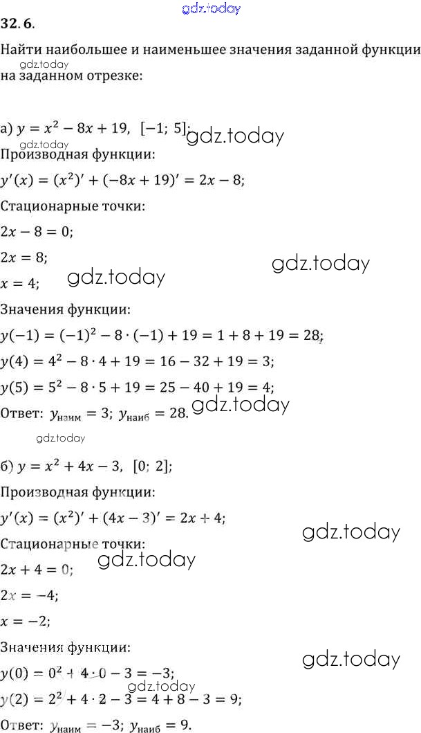 Ответы к §32. Применение производной для нахождения наибольших и наименьших значений величин Глава 5 32. 6 Задачнику по Алгебре для 10-11 класса Мордкович, Денищева Базовый уровень Мнемозина 2015