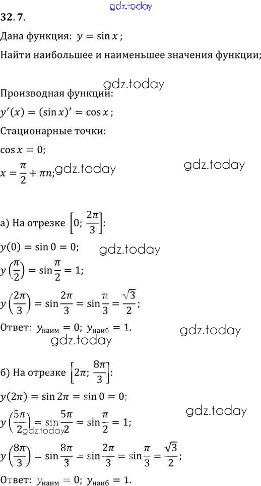 Ответы к §32. Применение производной для нахождения наибольших и наименьших значений величин Глава 5 32. 7 Задачнику по Алгебре для 10-11 класса Мордкович, Денищева Базовый уровень Мнемозина 2015
