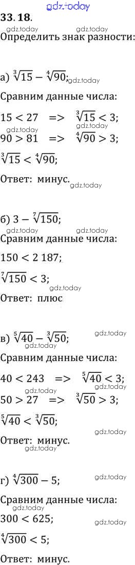На страницах сайта gdz.today вы найдете учебный и вспомогательный материал, направленный на улучшения знаний школьной программы. ГДЗ - онлайн мир знаний §33. Понятие корня n-й степени из действительного числа Глава 6 33. 18 Задачнику по Алгебре для 10-11 класса Мордкович, Денищева Базовый уровень Мнемозина 2015