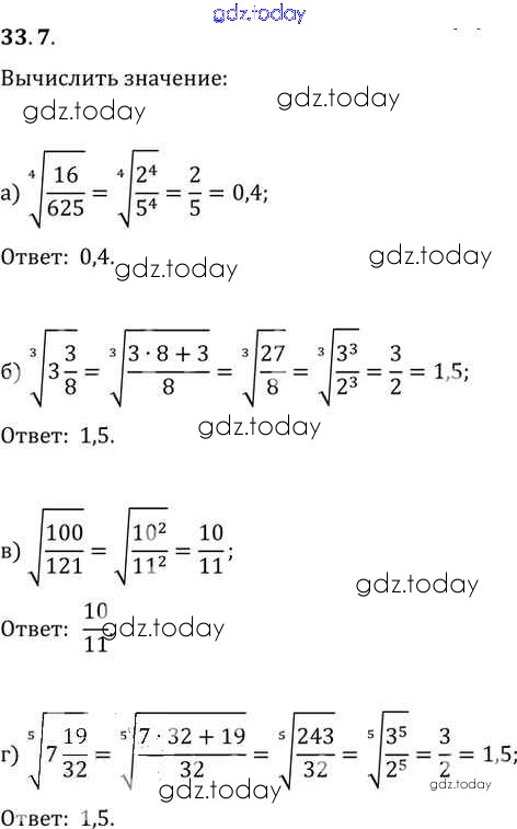 Ответы к §33. Понятие корня n-й степени из действительного числа Глава 6 33. 7 Задачнику по Алгебре для 10-11 класса Мордкович, Денищева Базовый уровень Мнемозина 2015