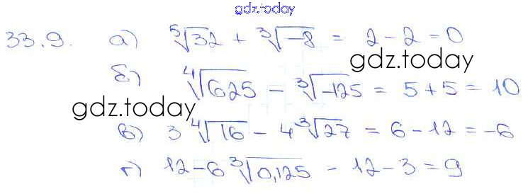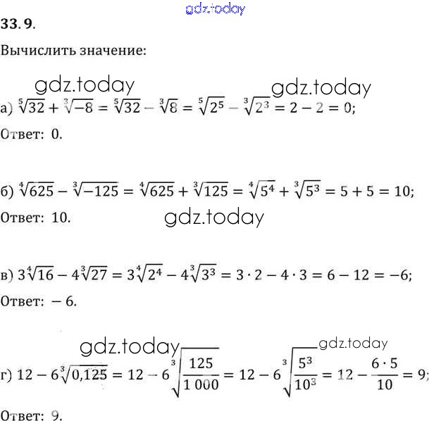 Ответы к §33. Понятие корня n-й степени из действительного числа Глава 6 33. 9 Задачнику по Алгебре для 10-11 класса Мордкович, Денищева Базовый уровень Мнемозина 2015