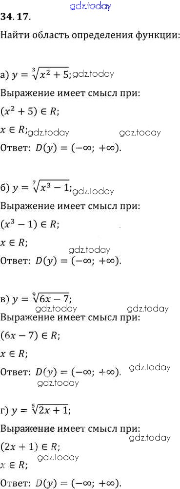 Ответы к §34. Функции y = ⁿ√x, их свойства и графики Глава 6 34. 17 Задачнику по Алгебре для 10-11 класса Мордкович, Денищева Базовый уровень Мнемозина 2015