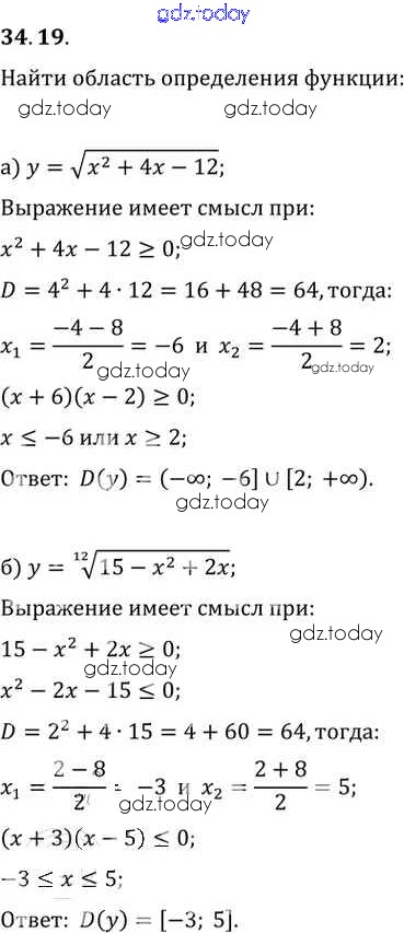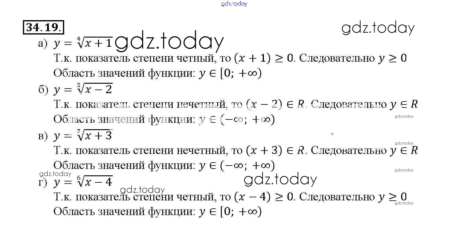 Ответы к §34. Функции y = ⁿ√x, их свойства и графики Глава 6 34. 19 Задачнику по Алгебре для 10-11 класса Мордкович, Денищева Базовый уровень Мнемозина 2015