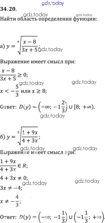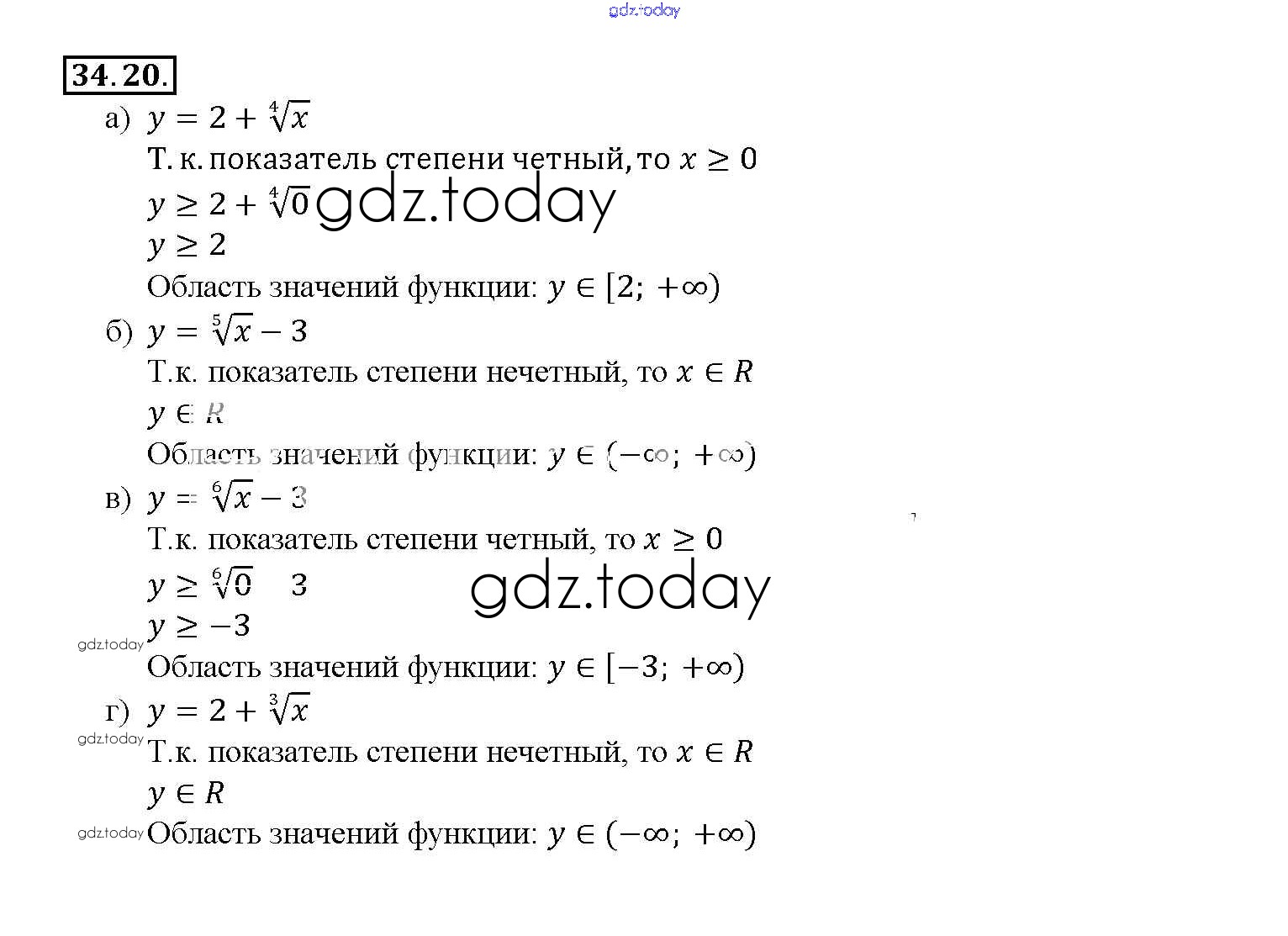 Ответы к §34. Функции y = ⁿ√x, их свойства и графики Глава 6 34. 20 Задачнику по Алгебре для 10-11 класса Мордкович, Денищева Базовый уровень Мнемозина 2015