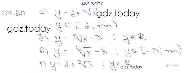На страницах сайта gdz.today вы найдете учебный и вспомогательный материал, направленный на улучшения знаний школьной программы. ГДЗ - онлайн мир знаний §34. Функции y = ⁿ√x, их свойства и графики Глава 6 34. 20 Задачнику по Алгебре для 10-11 класса Мордкович, Денищева Базовый уровень Мнемозина 2015
