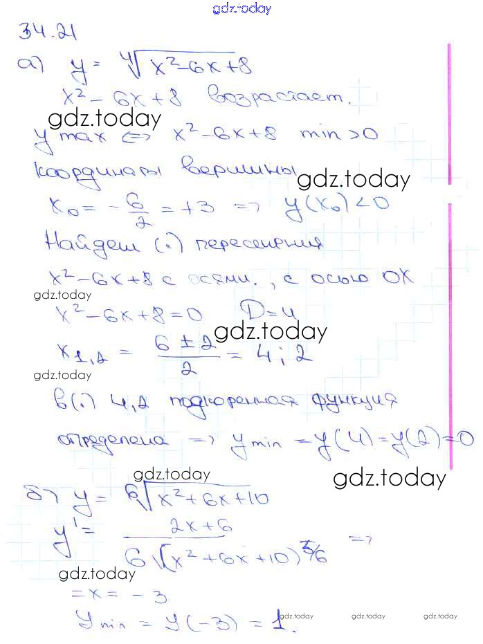 Ответы к §34. Функции y = ⁿ√x, их свойства и графики Глава 6 34. 21 Задачнику по Алгебре для 10-11 класса Мордкович, Денищева Базовый уровень Мнемозина 2015
