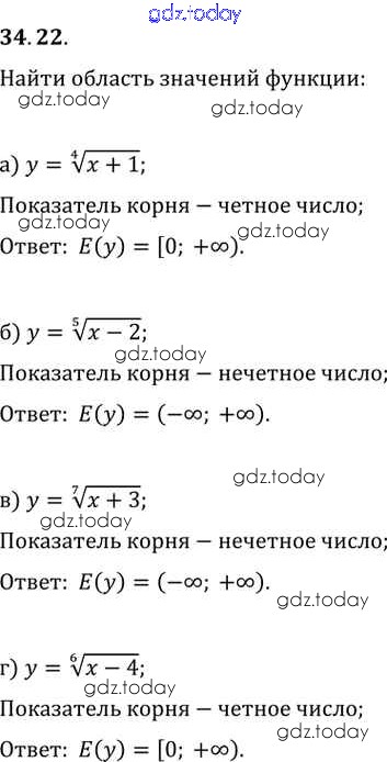 Ответы к §34. Функции y = ⁿ√x, их свойства и графики Глава 6 34. 22 Задачнику по Алгебре для 10-11 класса Мордкович, Денищева Базовый уровень Мнемозина 2015