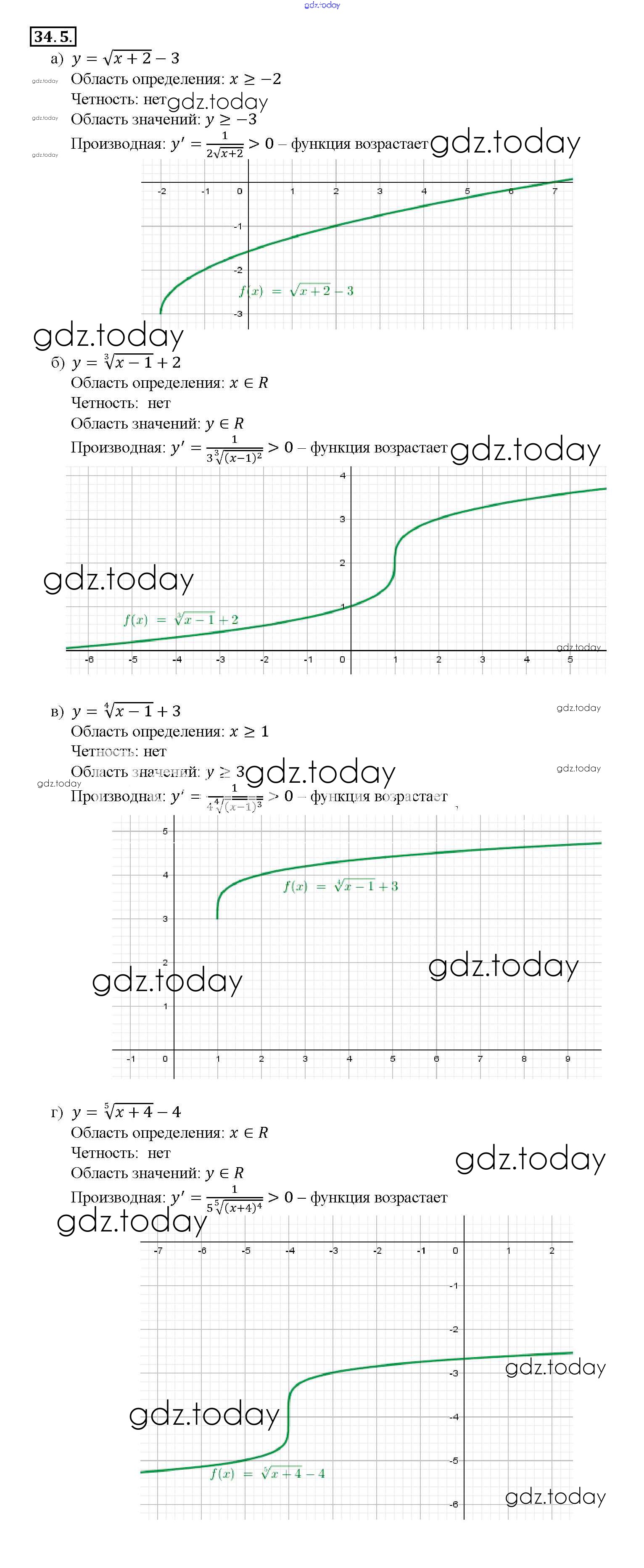 На страницах сайта gdz.today вы найдете учебный и вспомогательный материал, направленный на улучшения знаний школьной программы. ГДЗ - онлайн мир знаний §34. Функции y = ⁿ√x, их свойства и графики Глава 6 34. 5 Задачнику по Алгебре для 10-11 класса Мордкович, Денищева Базовый уровень Мнемозина 2015
