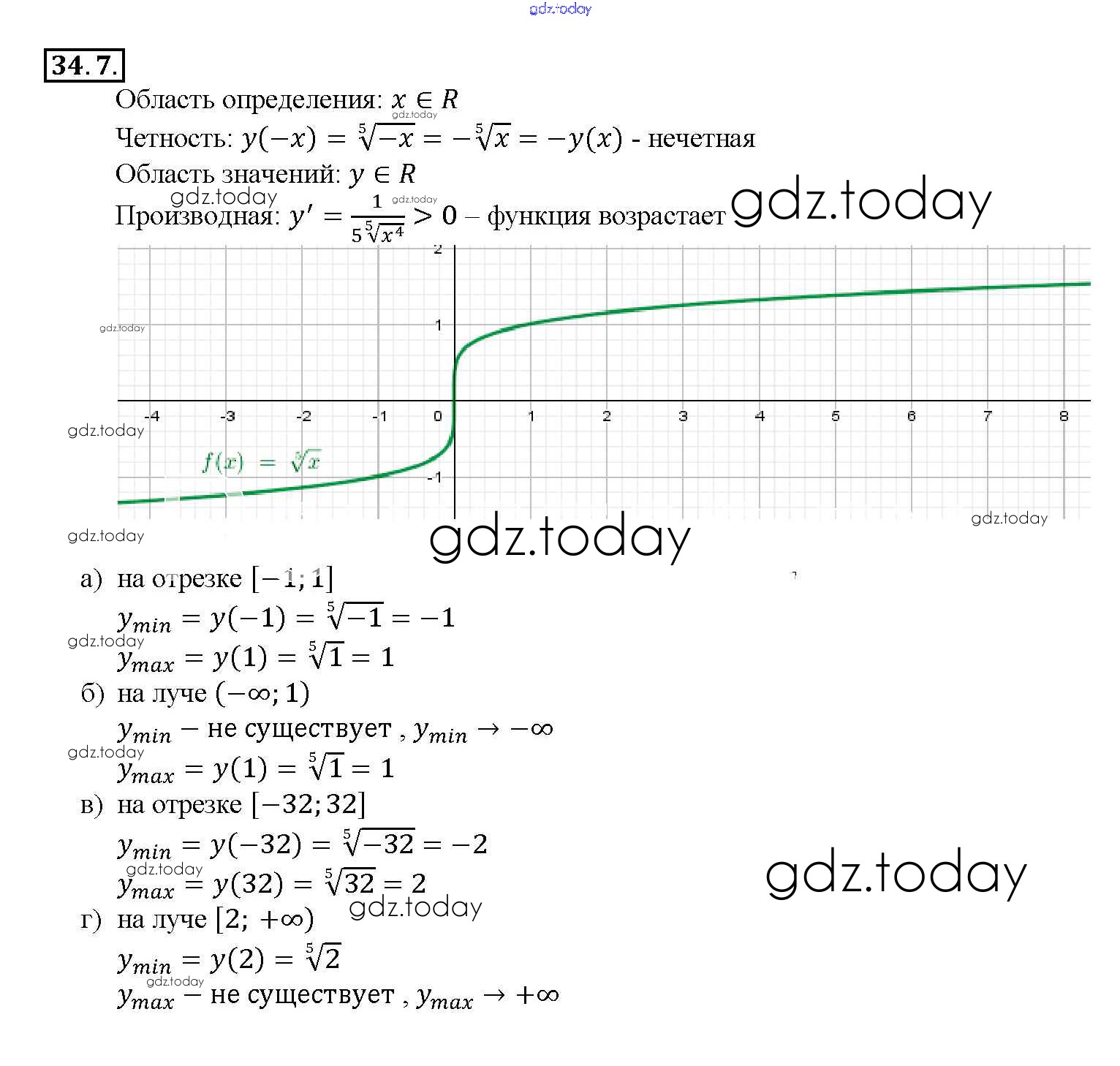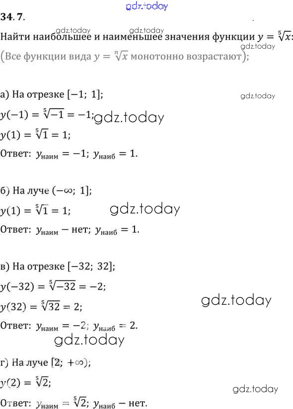 Ответы к §34. Функции y = ⁿ√x, их свойства и графики Глава 6 34. 7 Задачнику по Алгебре для 10-11 класса Мордкович, Денищева Базовый уровень Мнемозина 2015