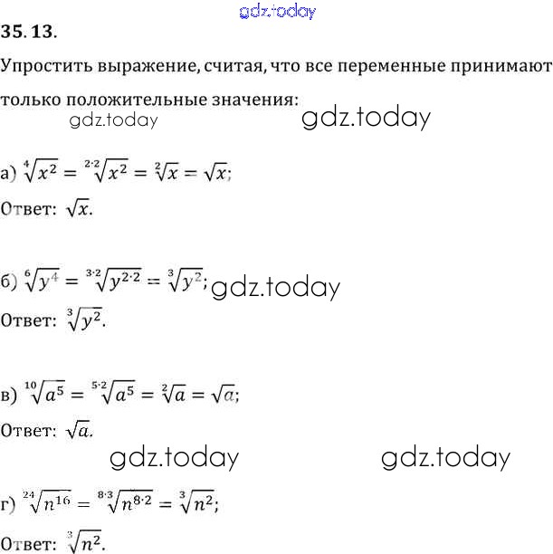 Ответы к §35. Свойства корня n-й степени Глава 6 35. 13 Задачнику по Алгебре для 10-11 класса Мордкович, Денищева Базовый уровень Мнемозина 2015