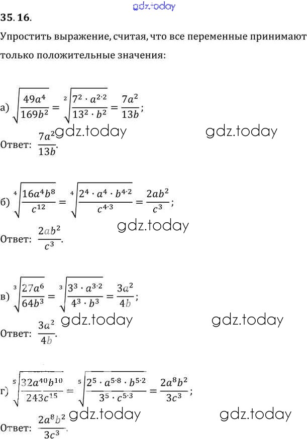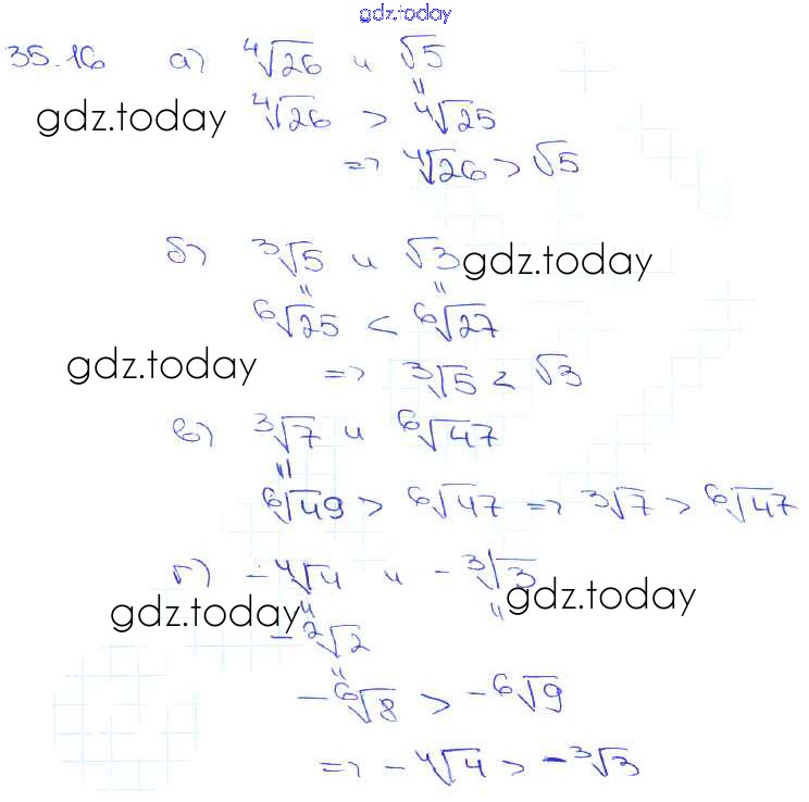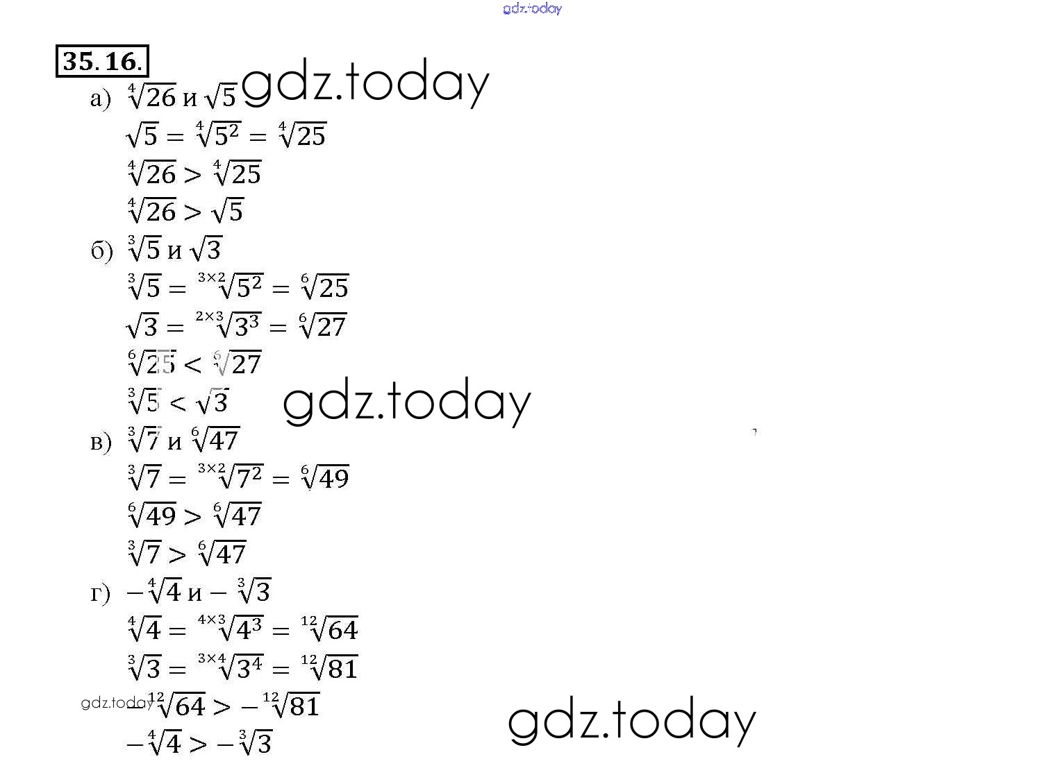 Ответы к §35. Свойства корня n-й степени Глава 6 35. 16 Задачнику по Алгебре для 10-11 класса Мордкович, Денищева Базовый уровень Мнемозина 2015