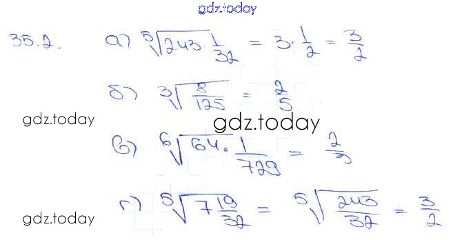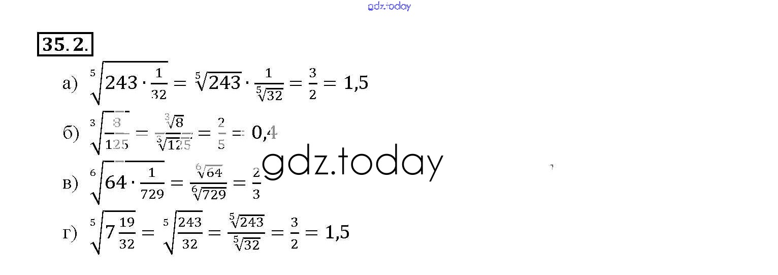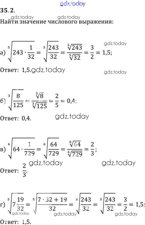 Ответы к §35. Свойства корня n-й степени Глава 6 35. 2 Задачнику по Алгебре для 10-11 класса Мордкович, Денищева Базовый уровень Мнемозина 2015