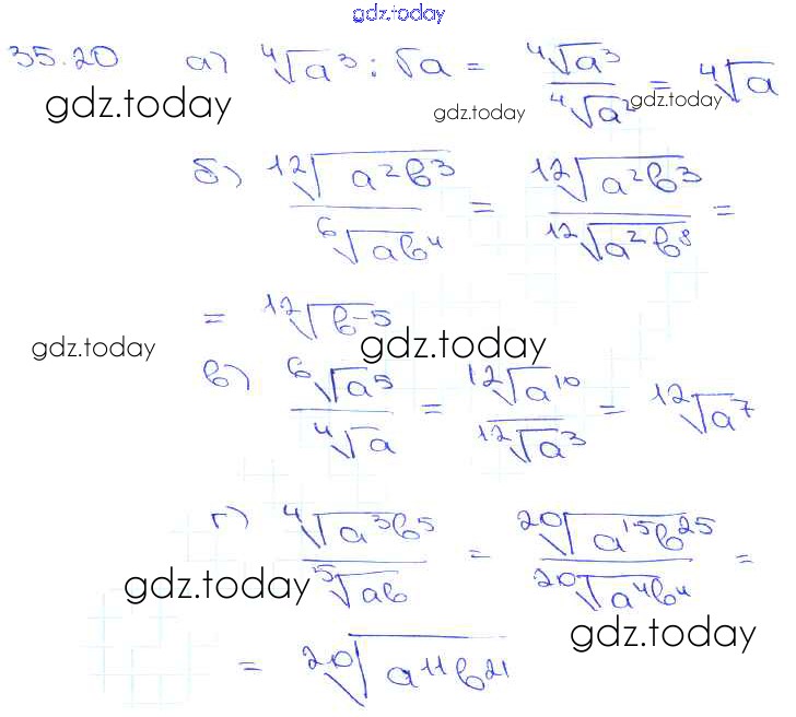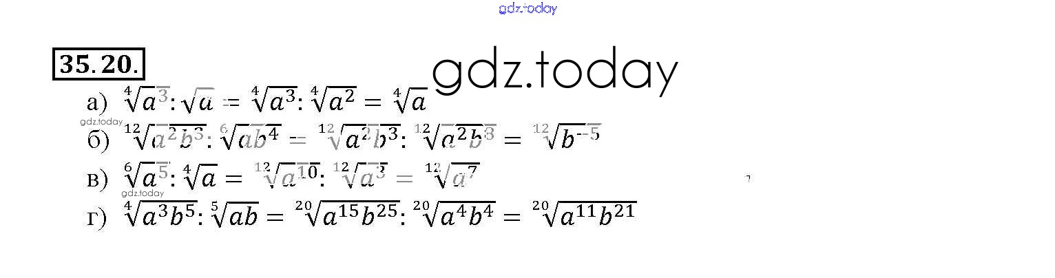 На страницах сайта gdz.today вы найдете учебный и вспомогательный материал, направленный на улучшения знаний школьной программы. ГДЗ - онлайн мир знаний §35. Свойства корня n-й степени Глава 6 35. 20 Задачнику по Алгебре для 10-11 класса Мордкович, Денищева Базовый уровень Мнемозина 2015