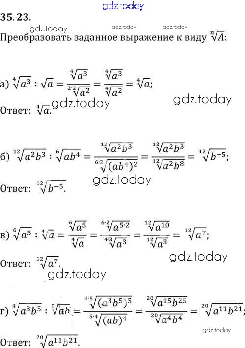 Ответы к §35. Свойства корня n-й степени Глава 6 35. 23 Задачнику по Алгебре для 10-11 класса Мордкович, Денищева Базовый уровень Мнемозина 2015
