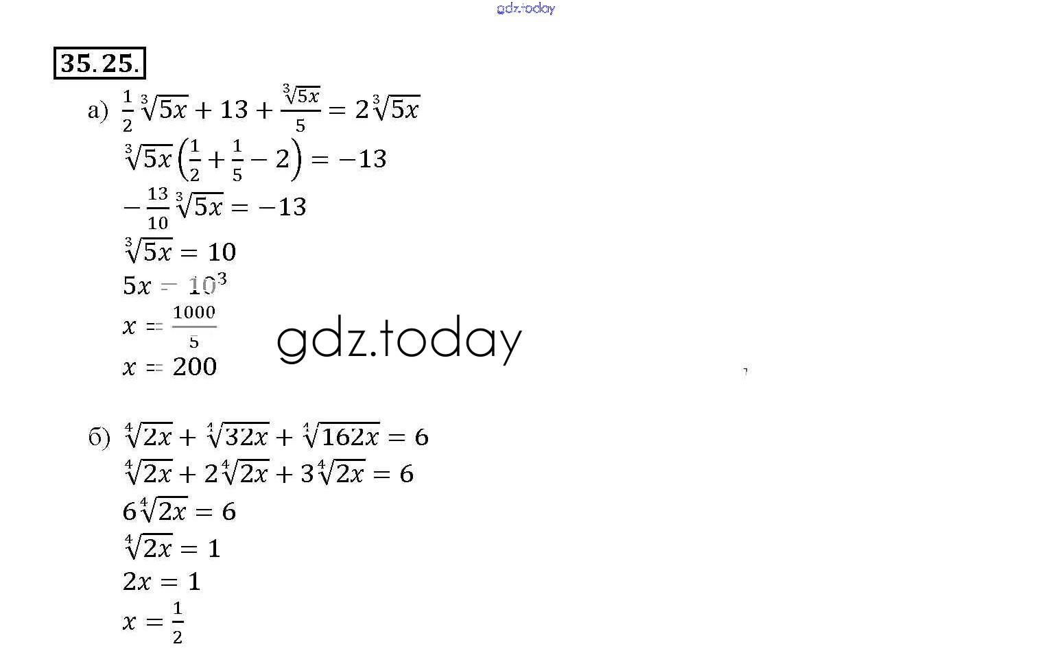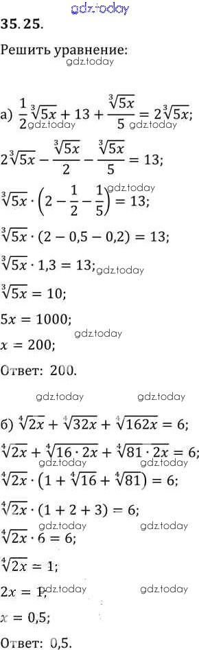 Ответы к §35. Свойства корня n-й степени Глава 6 35. 25 Задачнику по Алгебре для 10-11 класса Мордкович, Денищева Базовый уровень Мнемозина 2015