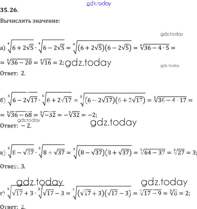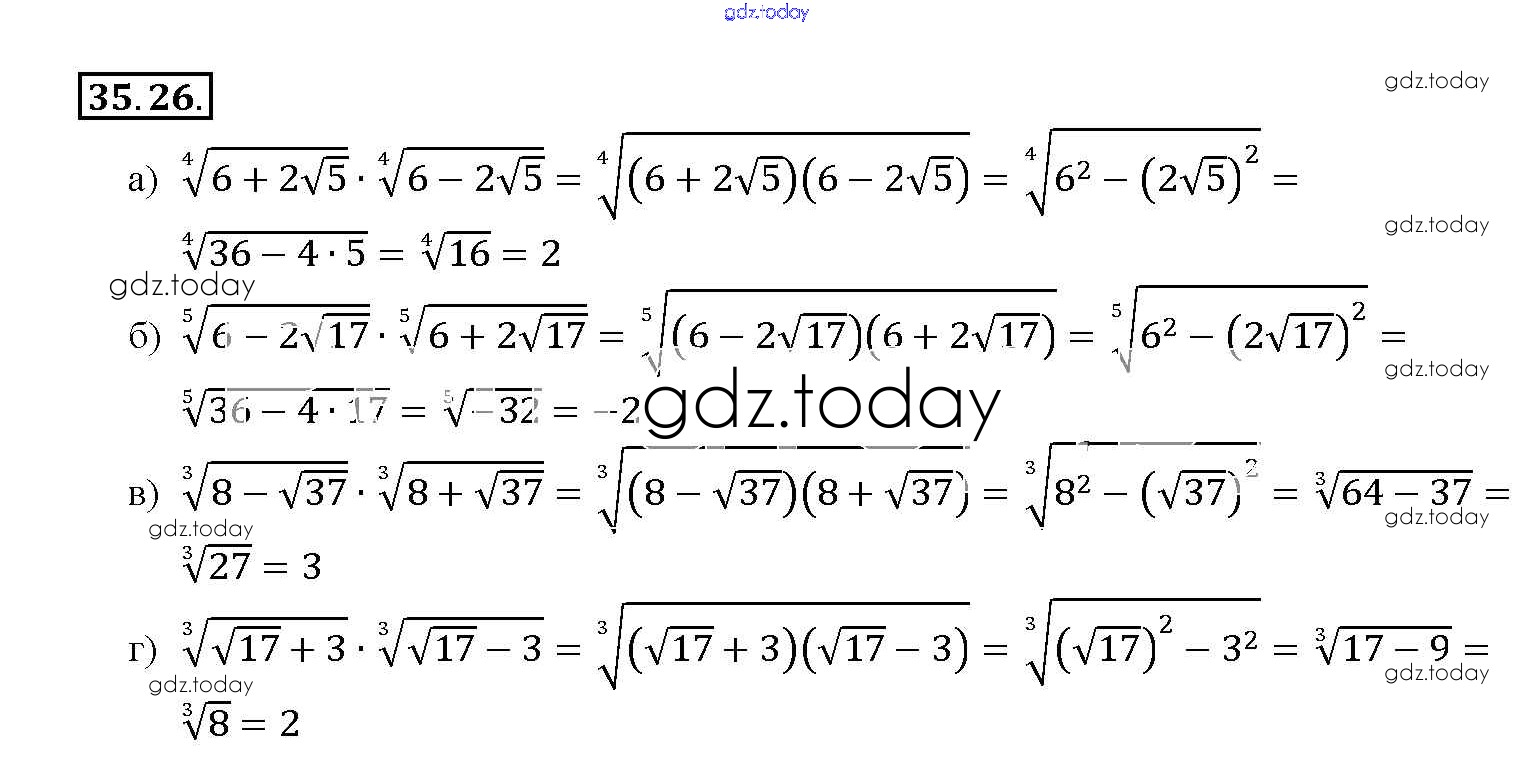Ответы к §35. Свойства корня n-й степени Глава 6 35. 26 Задачнику по Алгебре для 10-11 класса Мордкович, Денищева Базовый уровень Мнемозина 2015