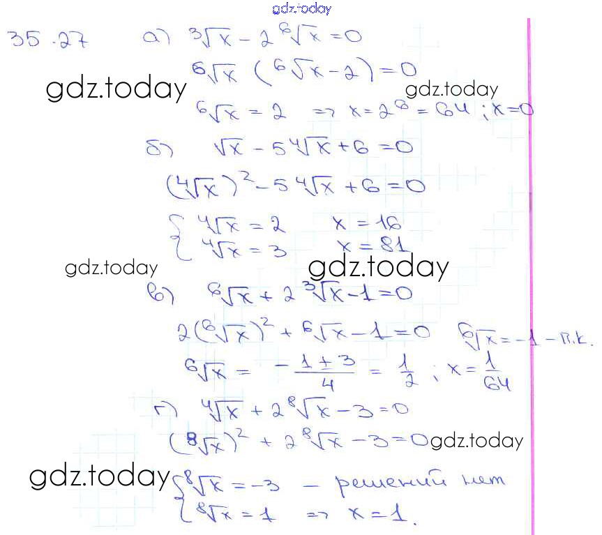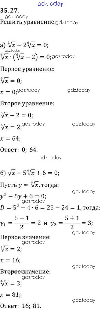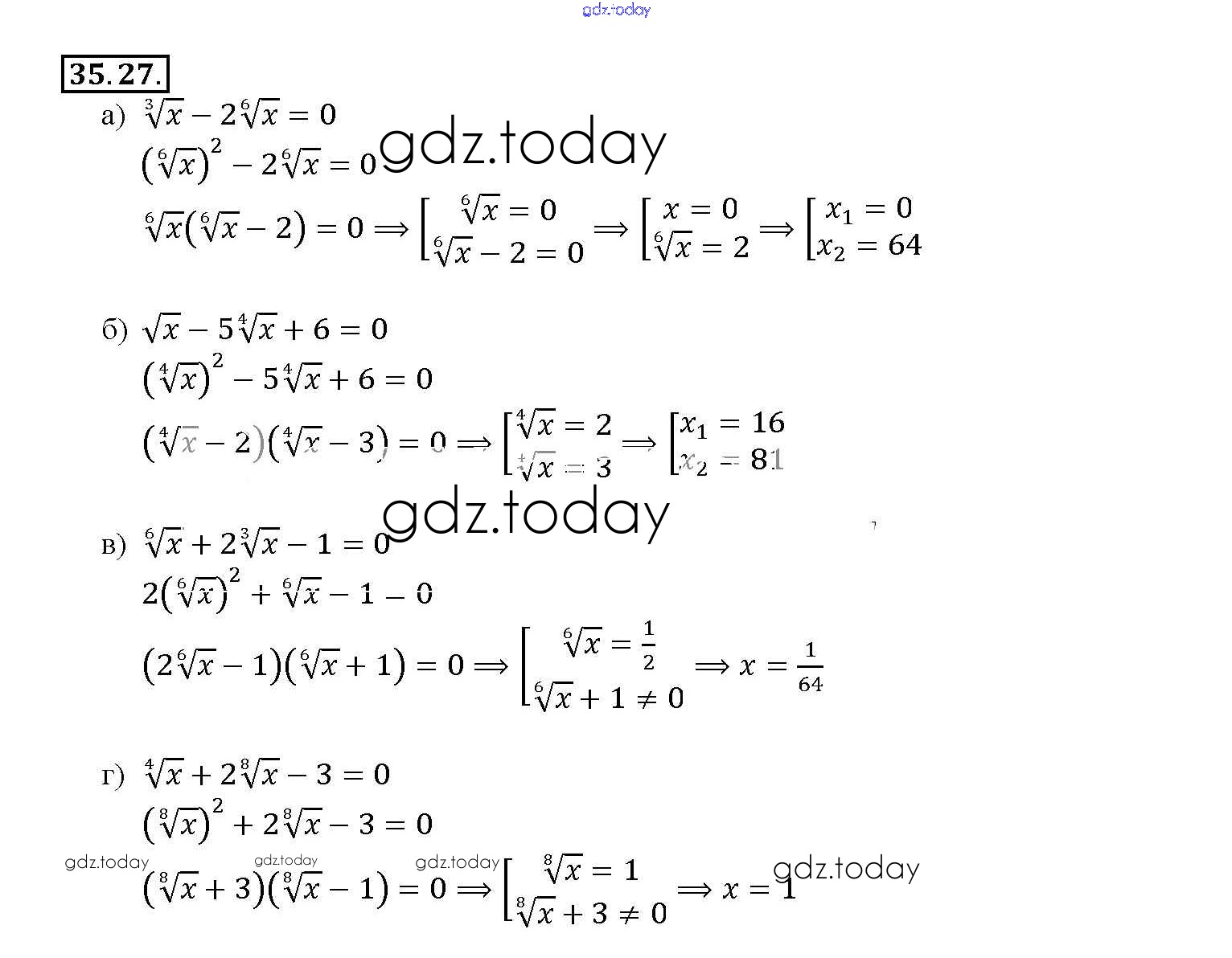 Ответы к §35. Свойства корня n-й степени Глава 6 35. 27 Задачнику по Алгебре для 10-11 класса Мордкович, Денищева Базовый уровень Мнемозина 2015