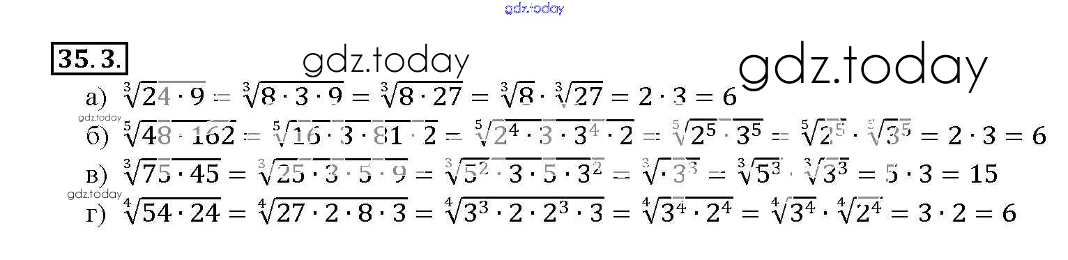 На страницах сайта gdz.today вы найдете учебный и вспомогательный материал, направленный на улучшения знаний школьной программы. ГДЗ - онлайн мир знаний §35. Свойства корня n-й степени Глава 6 35. 3 Задачнику по Алгебре для 10-11 класса Мордкович, Денищева Базовый уровень Мнемозина 2015