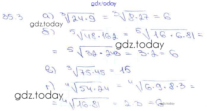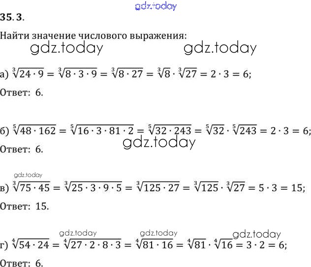 Ответы к §35. Свойства корня n-й степени Глава 6 35. 3 Задачнику по Алгебре для 10-11 класса Мордкович, Денищева Базовый уровень Мнемозина 2015