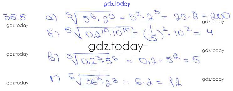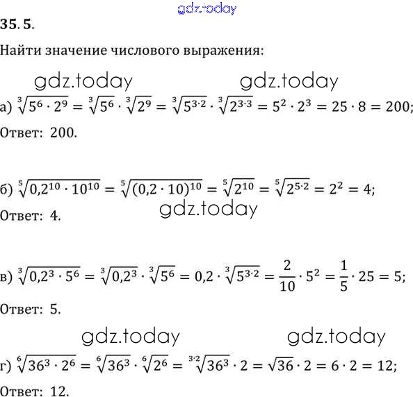 Ответы к §35. Свойства корня n-й степени Глава 6 35. 5 Задачнику по Алгебре для 10-11 класса Мордкович, Денищева Базовый уровень Мнемозина 2015