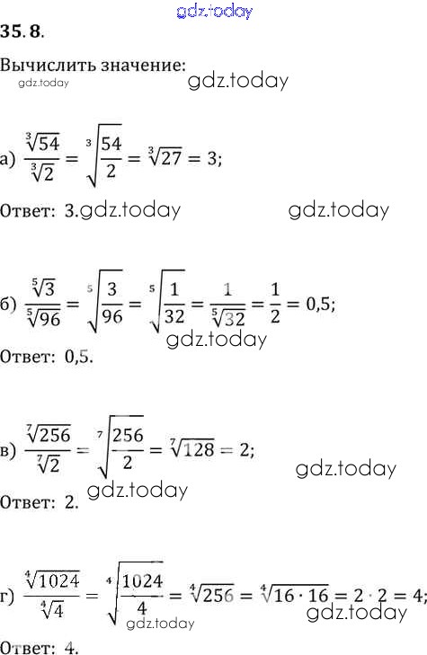 Ответы к §35. Свойства корня n-й степени Глава 6 35. 8 Задачнику по Алгебре для 10-11 класса Мордкович, Денищева Базовый уровень Мнемозина 2015