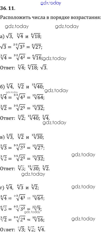 Ответы к §36. Преобразование выражений, содержащих радикалы Глава 6 36. 11 Задачнику по Алгебре для 10-11 класса Мордкович, Денищева Базовый уровень Мнемозина 2015