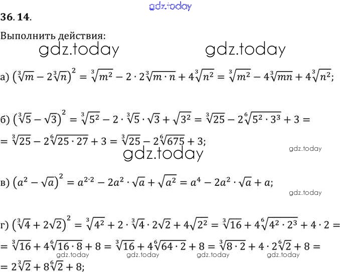 На страницах сайта gdz.today вы найдете учебный и вспомогательный материал, направленный на улучшения знаний школьной программы. ГДЗ - онлайн мир знаний §36. Преобразование выражений, содержащих радикалы Глава 6 36. 14 Задачнику по Алгебре для 10-11 класса Мордкович, Денищева Базовый уровень Мнемозина 2015