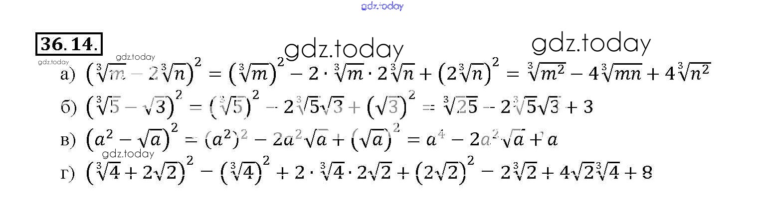 Ответы к §36. Преобразование выражений, содержащих радикалы Глава 6 36. 14 Задачнику по Алгебре для 10-11 класса Мордкович, Денищева Базовый уровень Мнемозина 2015