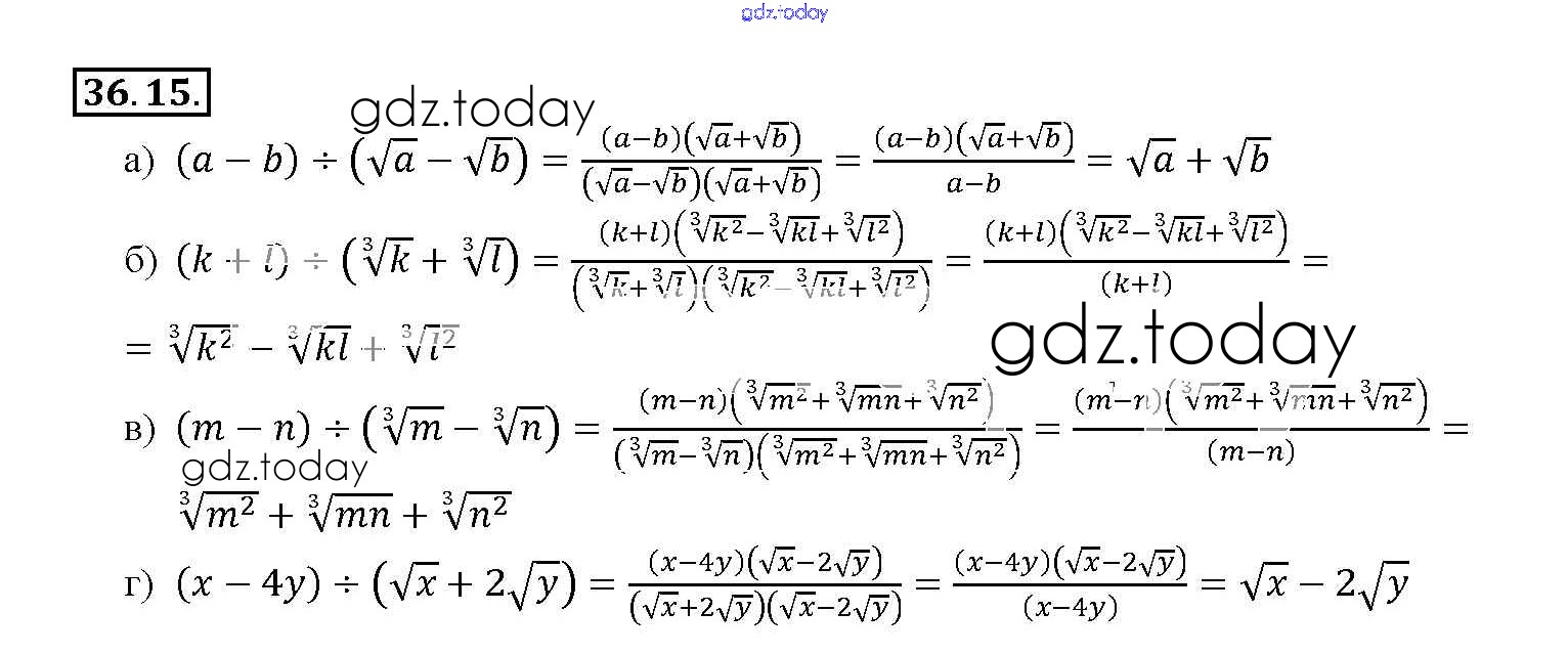 На страницах сайта gdz.today вы найдете учебный и вспомогательный материал, направленный на улучшения знаний школьной программы. ГДЗ - онлайн мир знаний §36. Преобразование выражений, содержащих радикалы Глава 6 36. 15 Задачнику по Алгебре для 10-11 класса Мордкович, Денищева Базовый уровень Мнемозина 2015