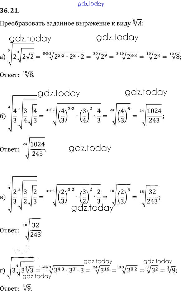Ответы к §36. Преобразование выражений, содержащих радикалы Глава 6 36. 21 Задачнику по Алгебре для 10-11 класса Мордкович, Денищева Базовый уровень Мнемозина 2015