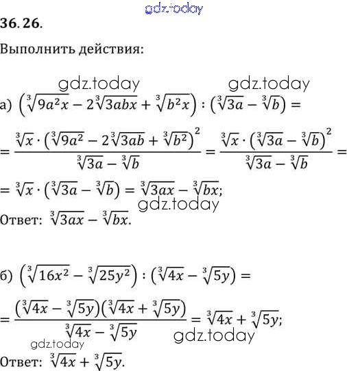 Ответы к §36. Преобразование выражений, содержащих радикалы Глава 6 36. 26 Задачнику по Алгебре для 10-11 класса Мордкович, Денищева Базовый уровень Мнемозина 2015