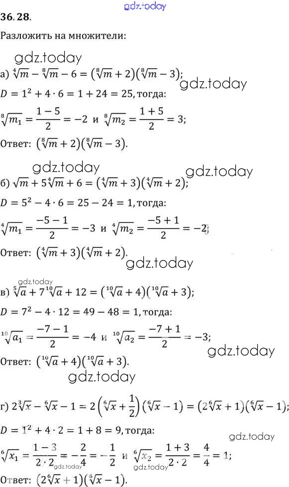 Ответы к §36. Преобразование выражений, содержащих радикалы Глава 6 36. 28 Задачнику по Алгебре для 10-11 класса Мордкович, Денищева Базовый уровень Мнемозина 2015