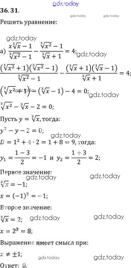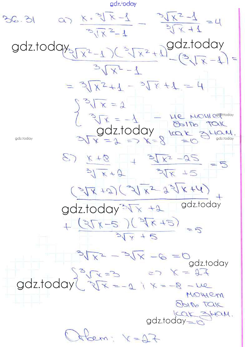 Ответы к §36. Преобразование выражений, содержащих радикалы Глава 6 36. 31 Задачнику по Алгебре для 10-11 класса Мордкович, Денищева Базовый уровень Мнемозина 2015