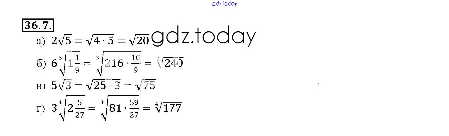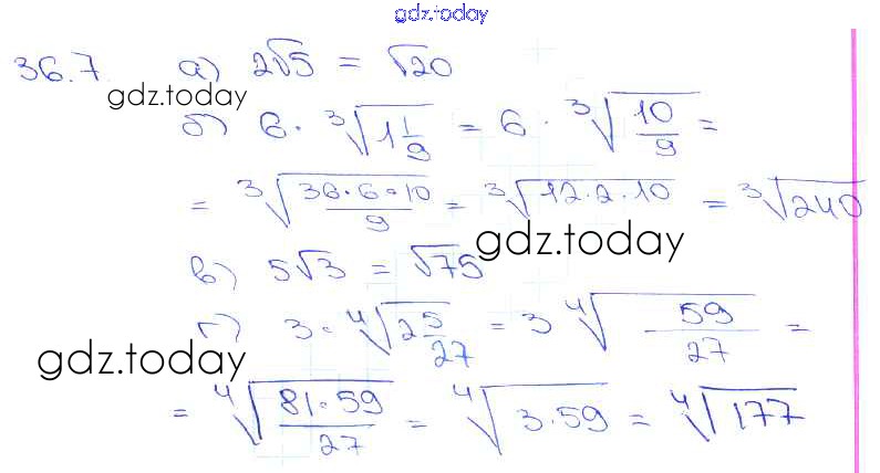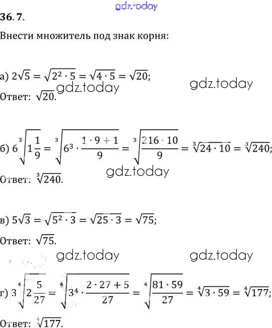 На страницах сайта gdz.today вы найдете учебный и вспомогательный материал, направленный на улучшения знаний школьной программы. ГДЗ - онлайн мир знаний §36. Преобразование выражений, содержащих радикалы Глава 6 36. 7 Задачнику по Алгебре для 10-11 класса Мордкович, Денищева Базовый уровень Мнемозина 2015