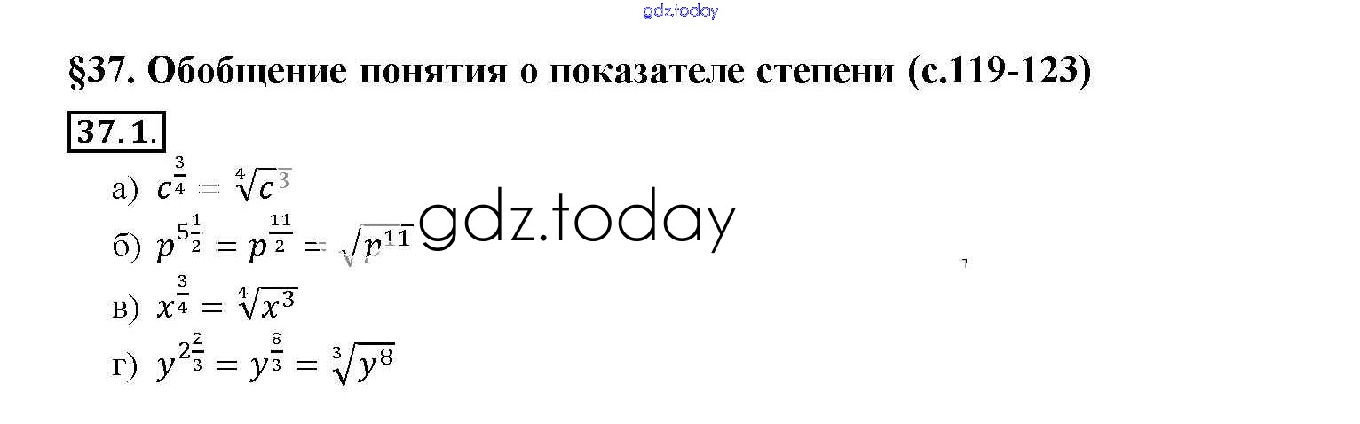 На страницах сайта gdz.today вы найдете учебный и вспомогательный материал, направленный на улучшения знаний школьной программы. ГДЗ - онлайн мир знаний §37. Обобщение понятия о показателе степени Глава 6 37. 1 Задачнику по Алгебре для 10-11 класса Мордкович, Денищева Базовый уровень Мнемозина 2015
