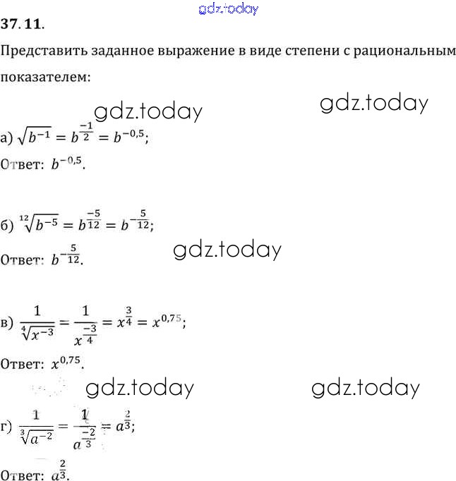 Ответы к §37. Обобщение понятия о показателе степени Глава 6 37. 11 Задачнику по Алгебре для 10-11 класса Мордкович, Денищева Базовый уровень Мнемозина 2015